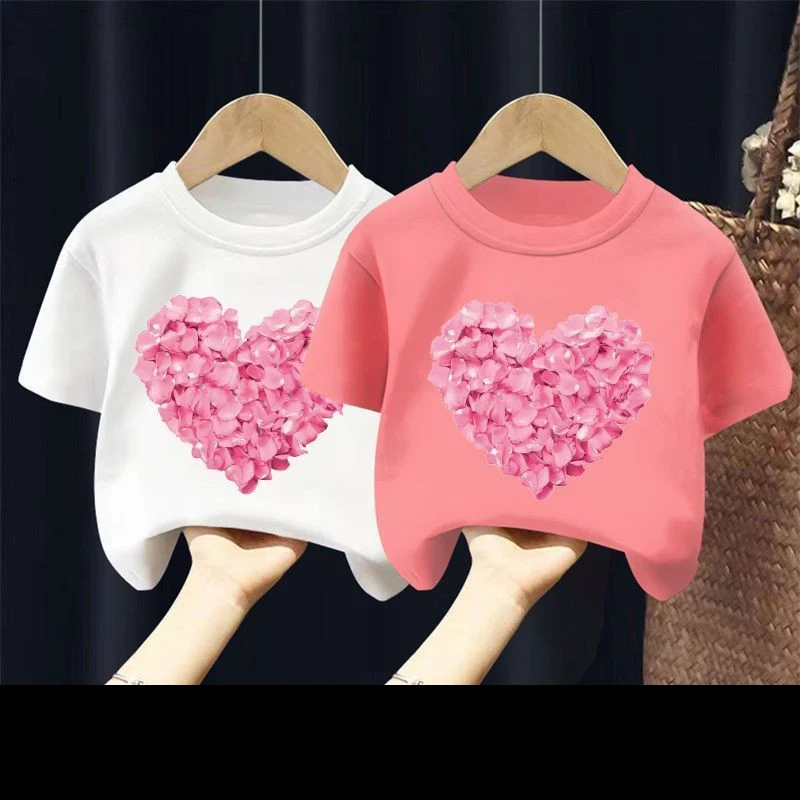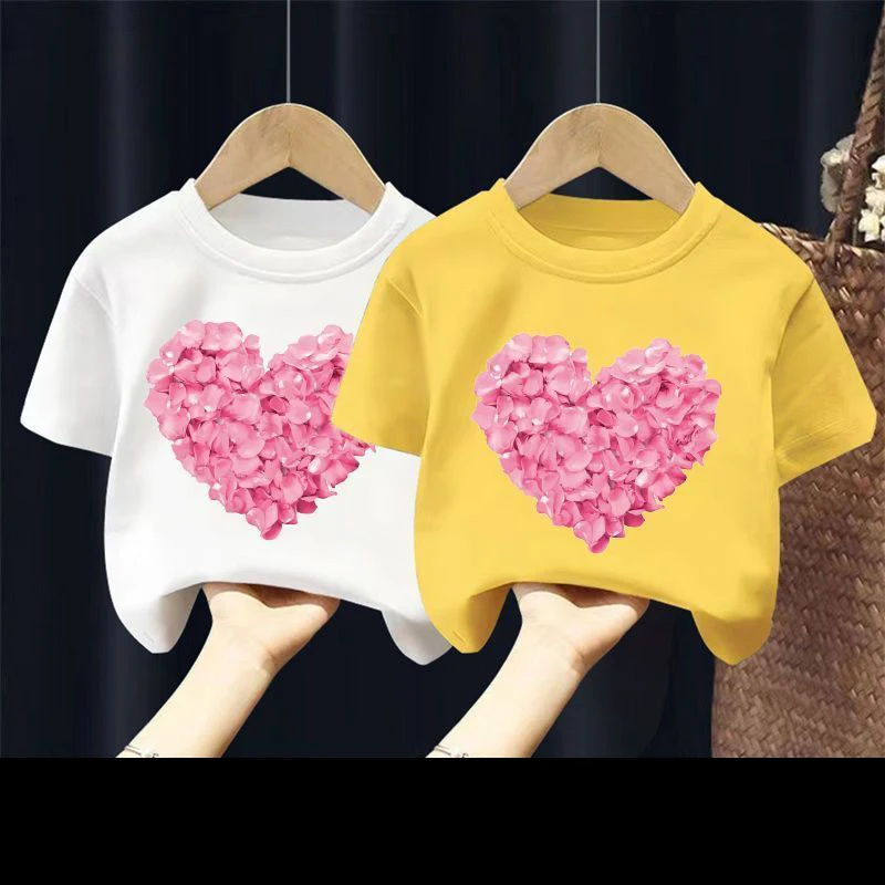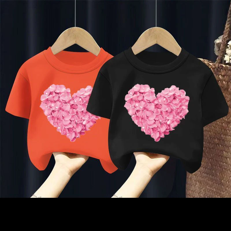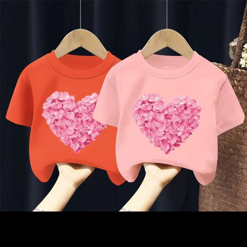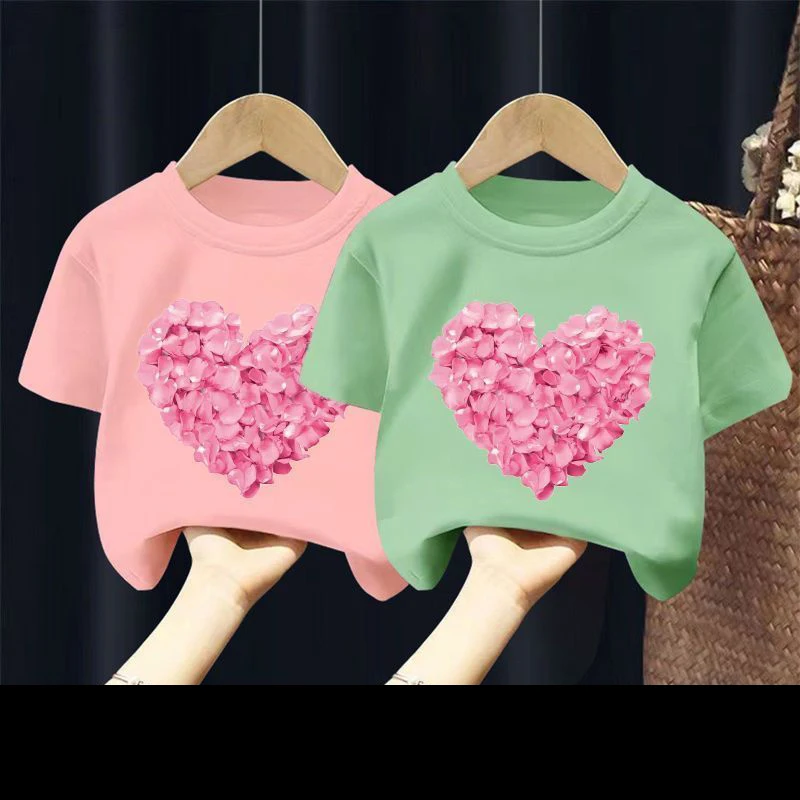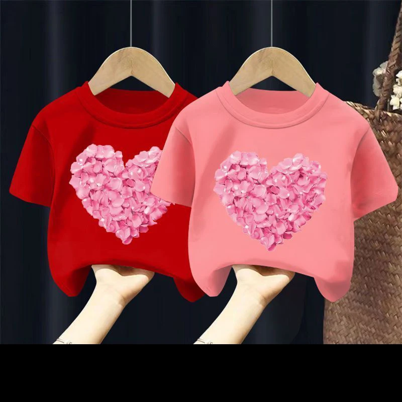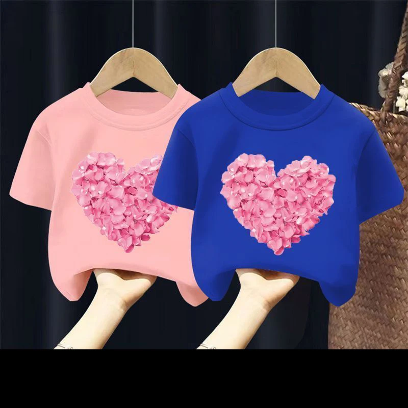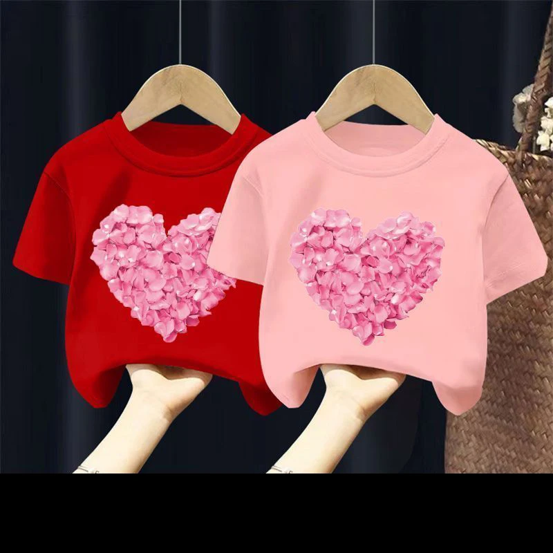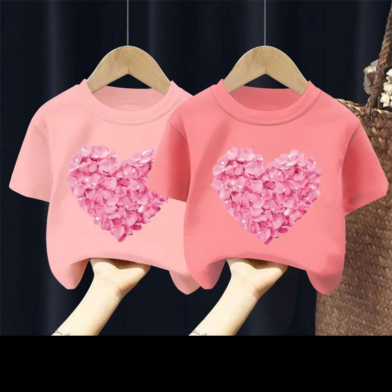 Comprar Camiseta fina de verano para niñas, camisetas de princesa con forma de corazón y flores, traje a juego para hermanas de manga corta, Tops para niños, 2 uds.