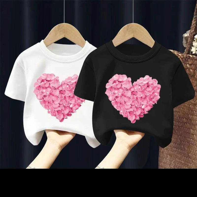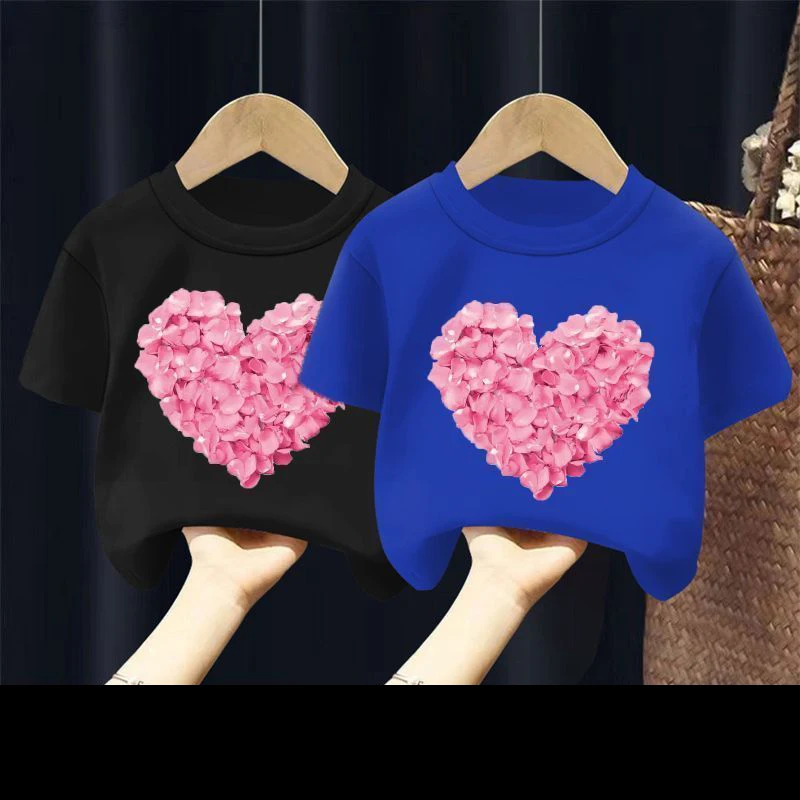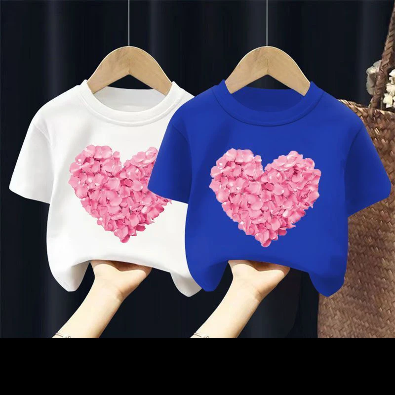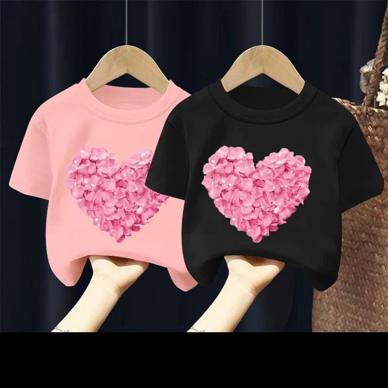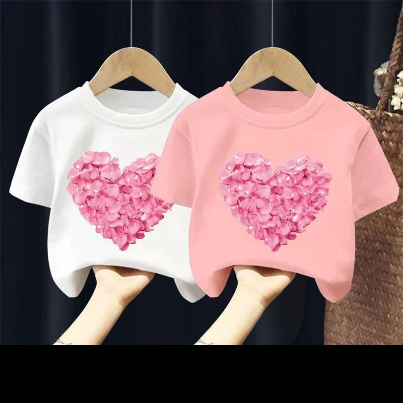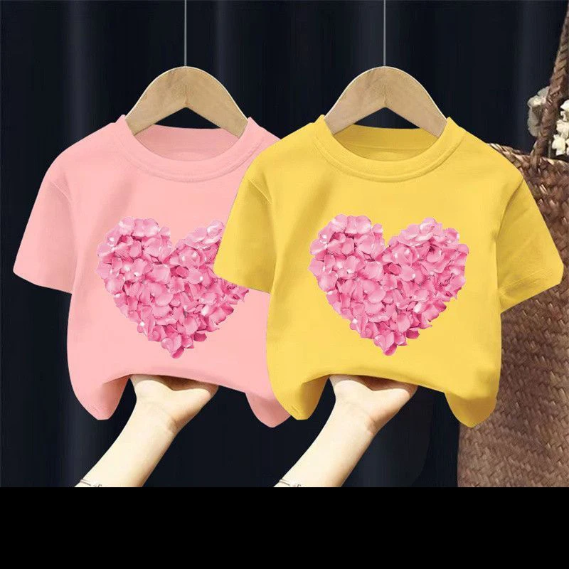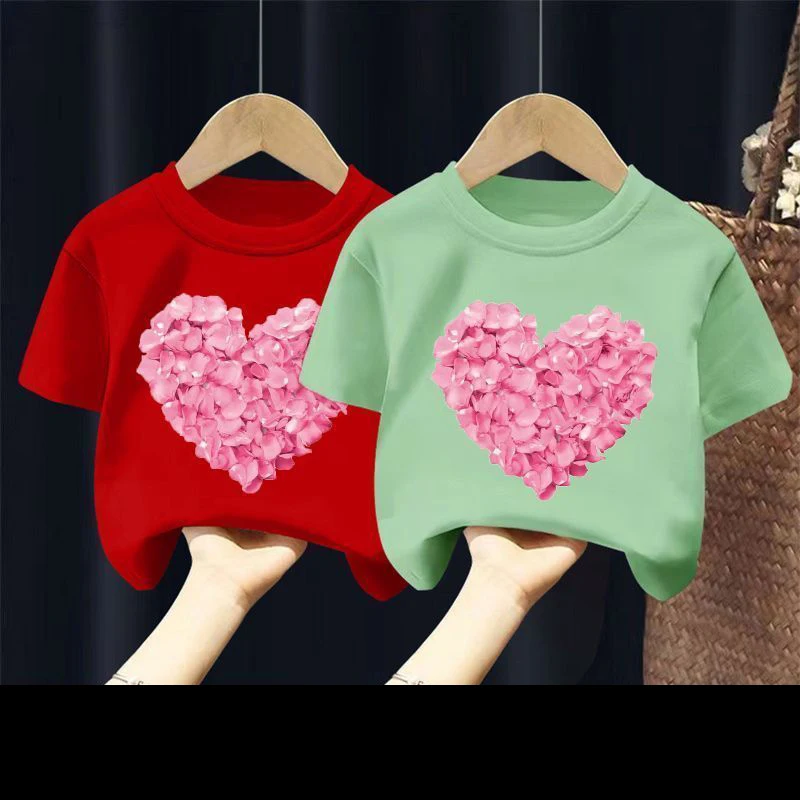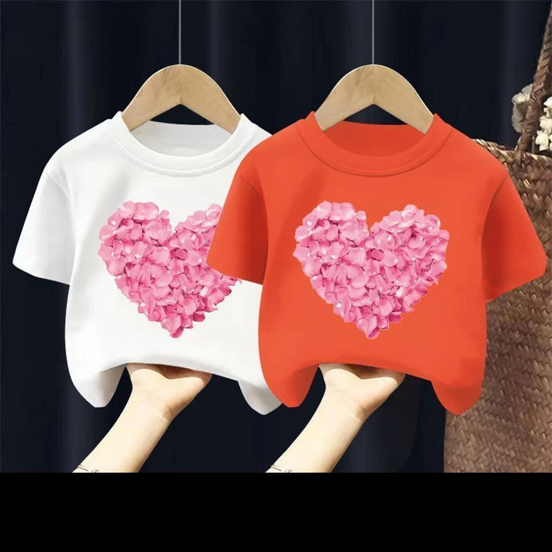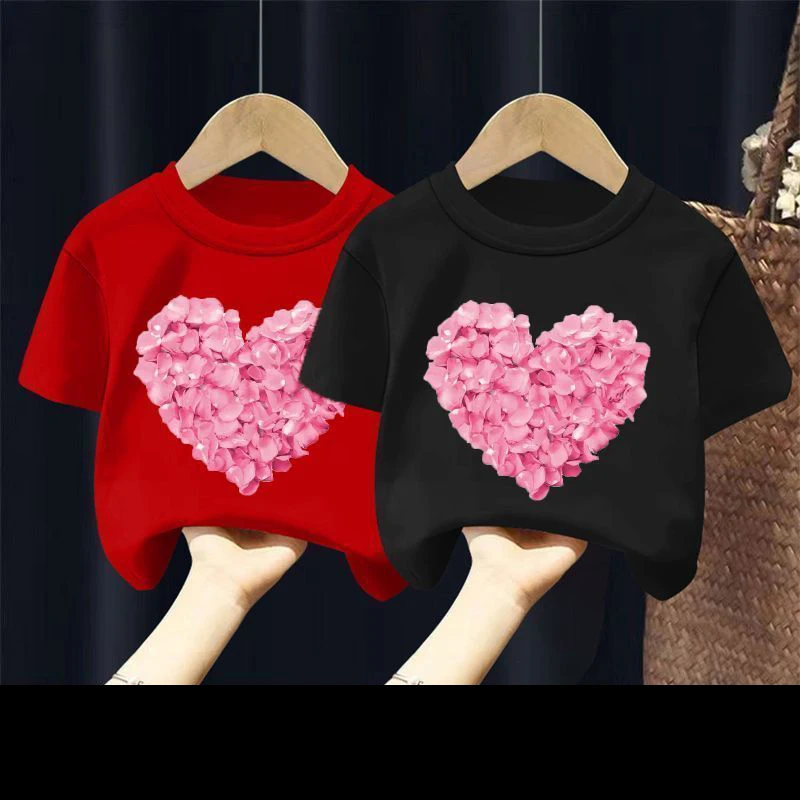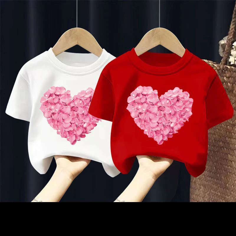 Comprar Camiseta fina de verano para niñas, camisetas de princesa con forma de corazón y flores, traje a juego para hermanas de manga corta, Tops para niños, 2 uds.