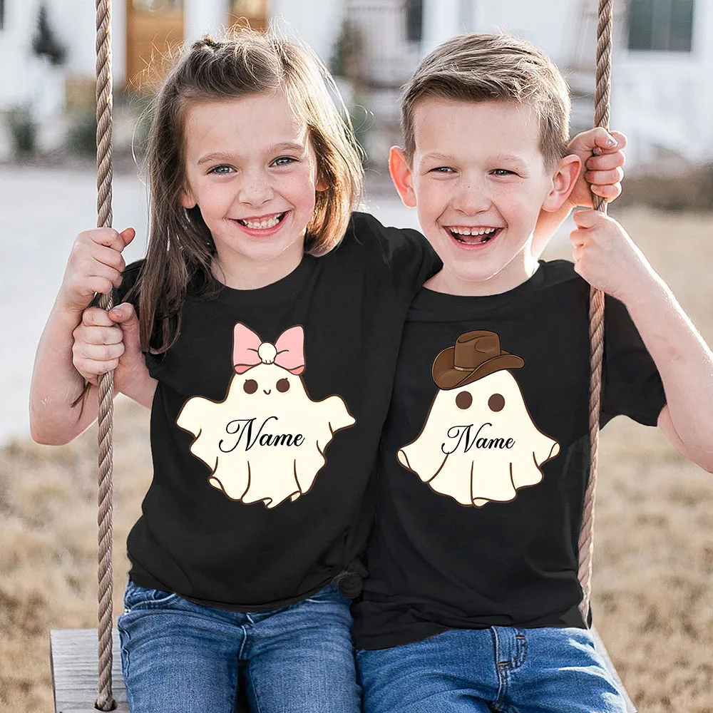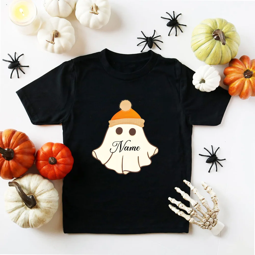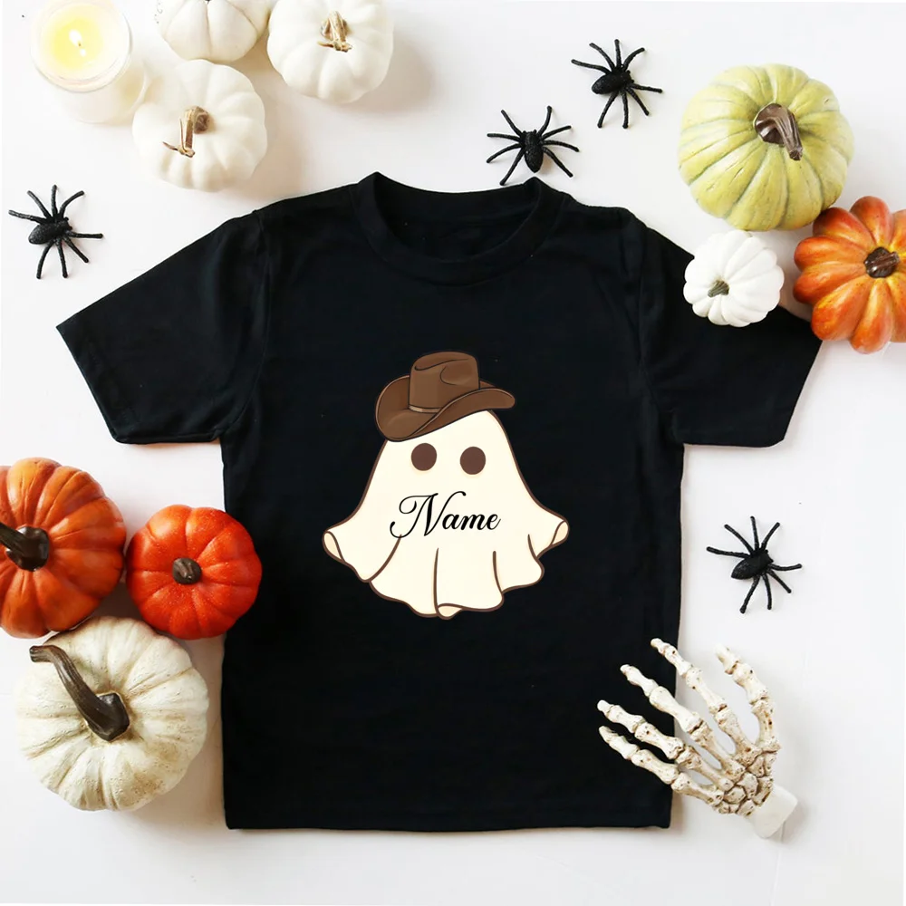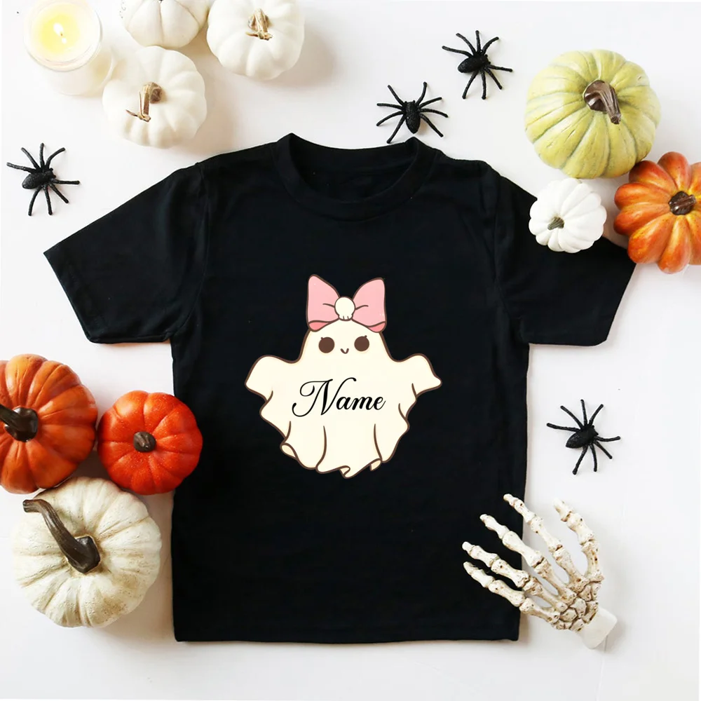 Comprar Camiseta de Halloween personalizada para niños y niñas, camisa con lazo fantasma, nombre personalizado