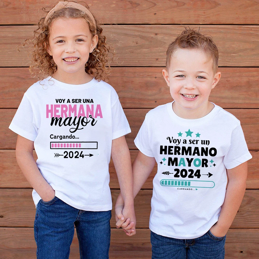 Comprar Camiseta "I'm Being Promoted To Big Sister/Brother 2024, camiseta de anuncio de bebé, camisetas con estampado español para niños, ropa de verano