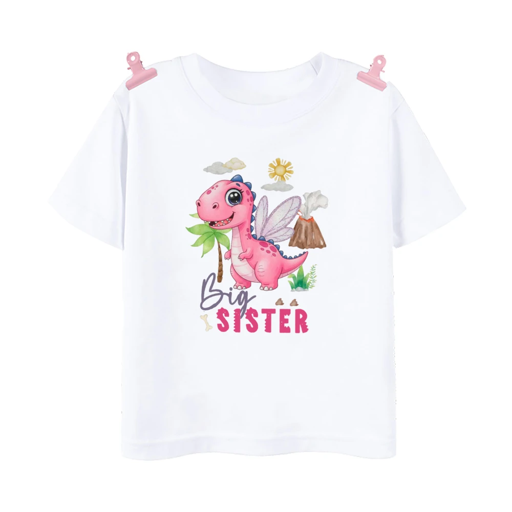 Camiseta a juego con estampado de lazo para hermana pequeña y hermana pequeña, camiseta a juego para niñas, camiseta de manga corta para niños, ropa de verano para niños