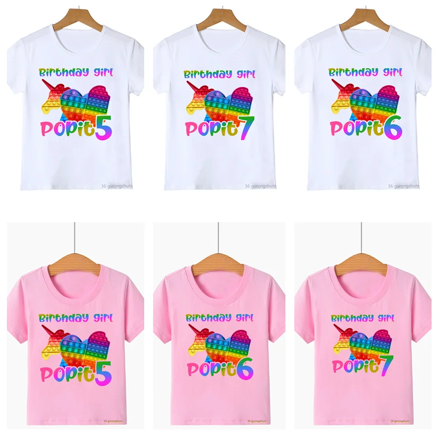 Comprar Camiseta Kawaii de unicornio para niños y niñas, camisa de feliz cumpleaños, regalo de cumpleaños, ropa Pop It para bebés, 5, 6, 7, 8, 9