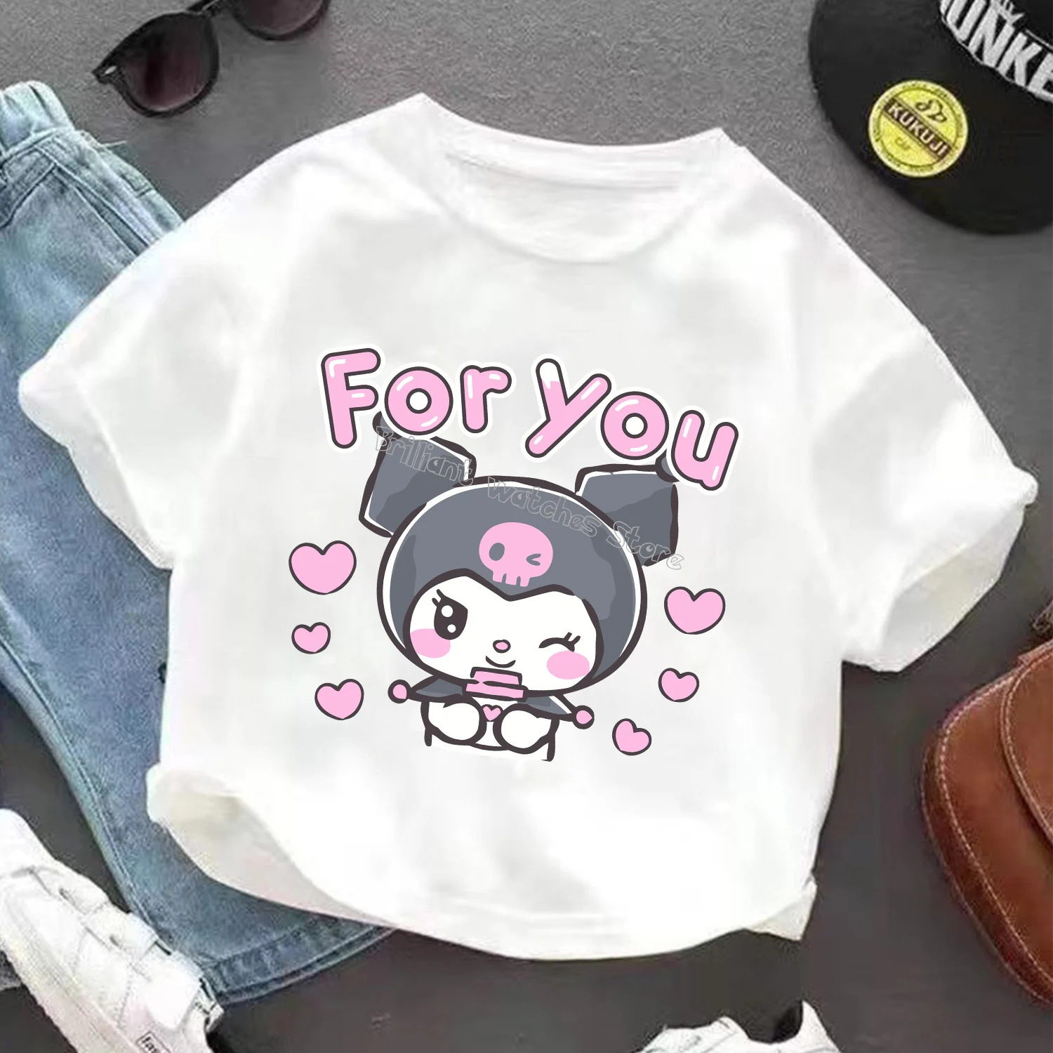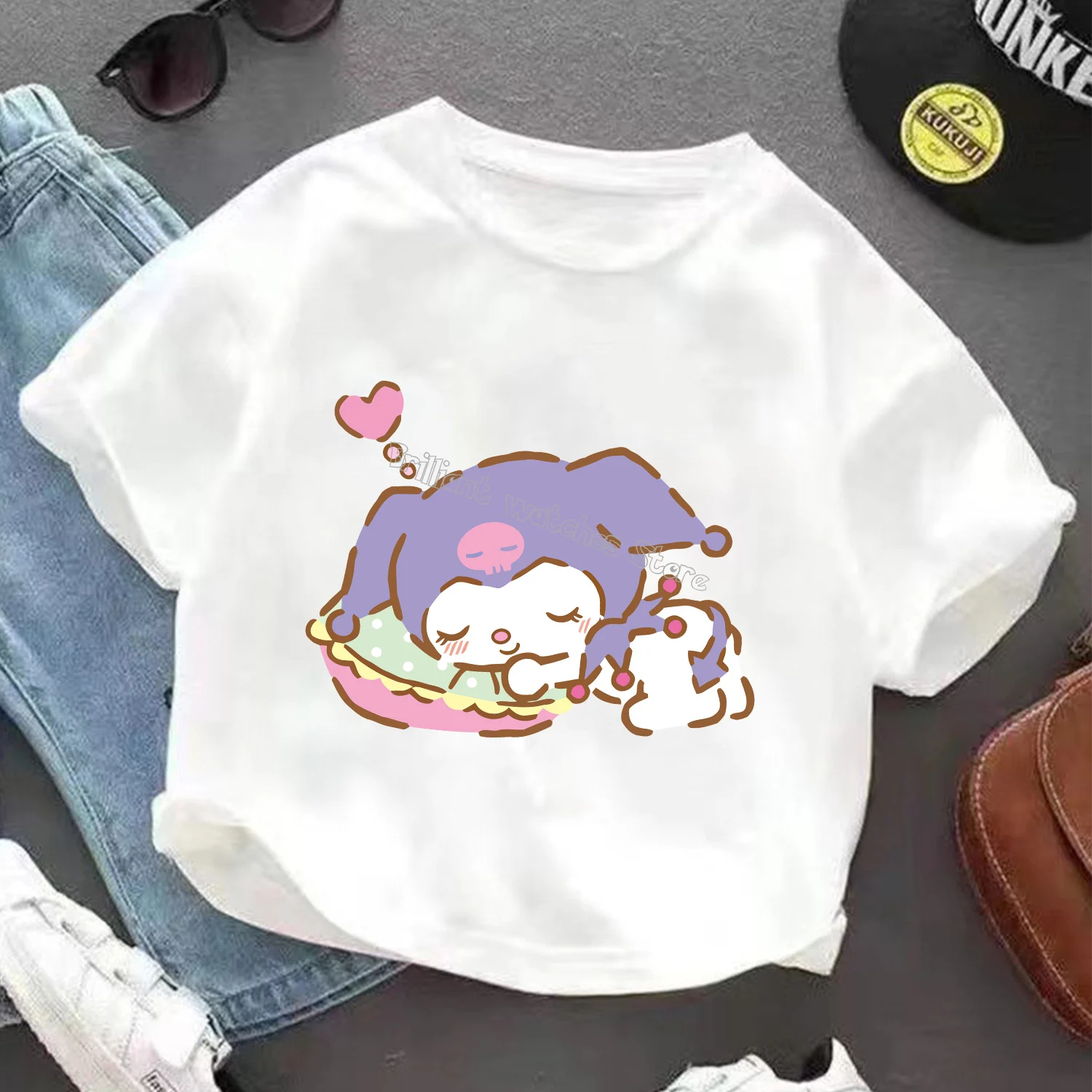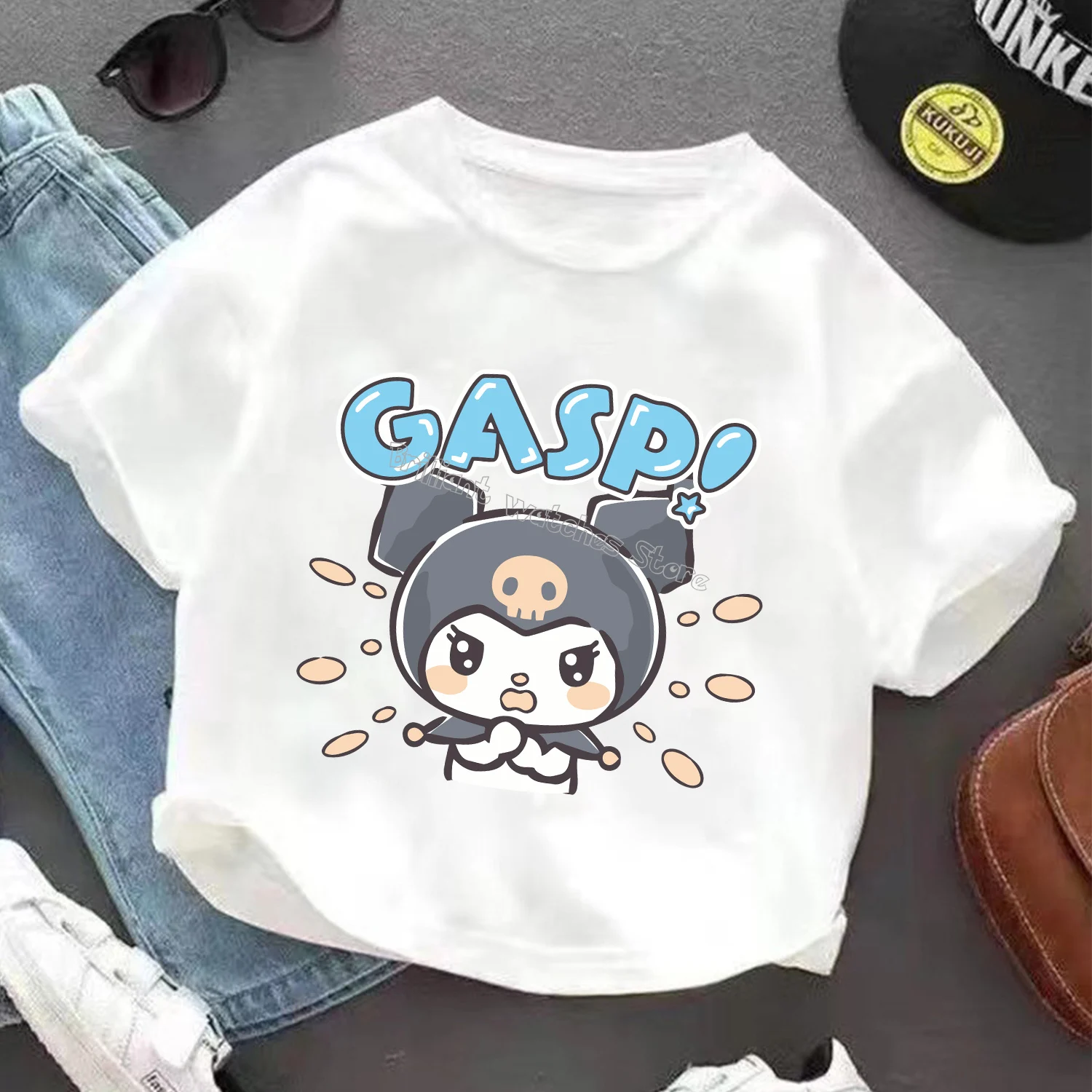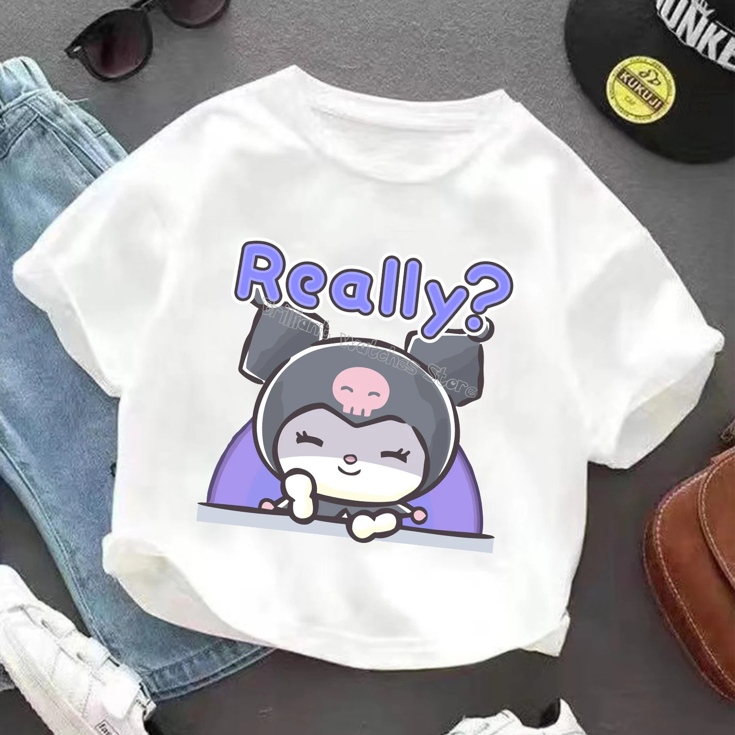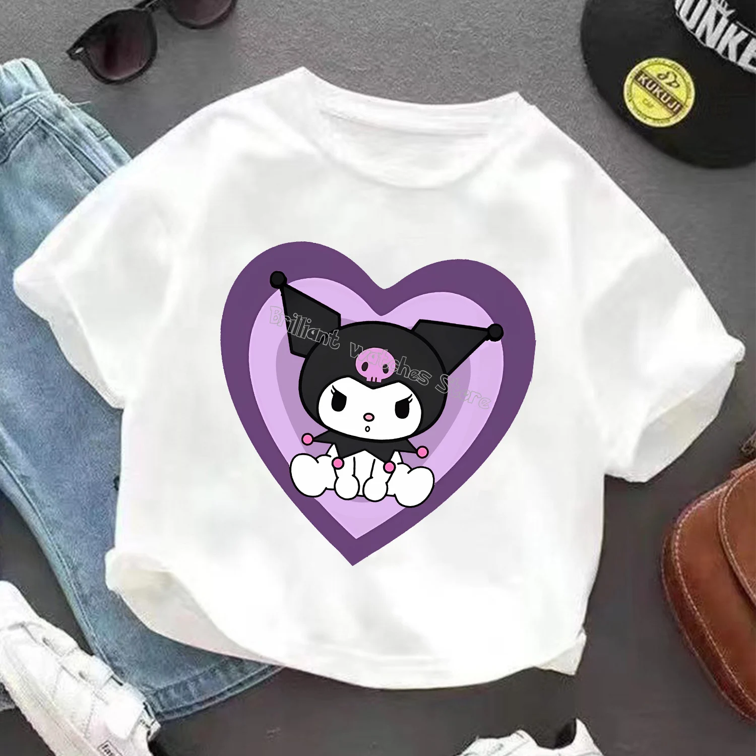 Camiseta Kuromi para niños, ropa bonita de dibujos animados, moda, estampado de Anime, ropa blanca, camiseta de cuello redondo de verano para chico, regalo superior
