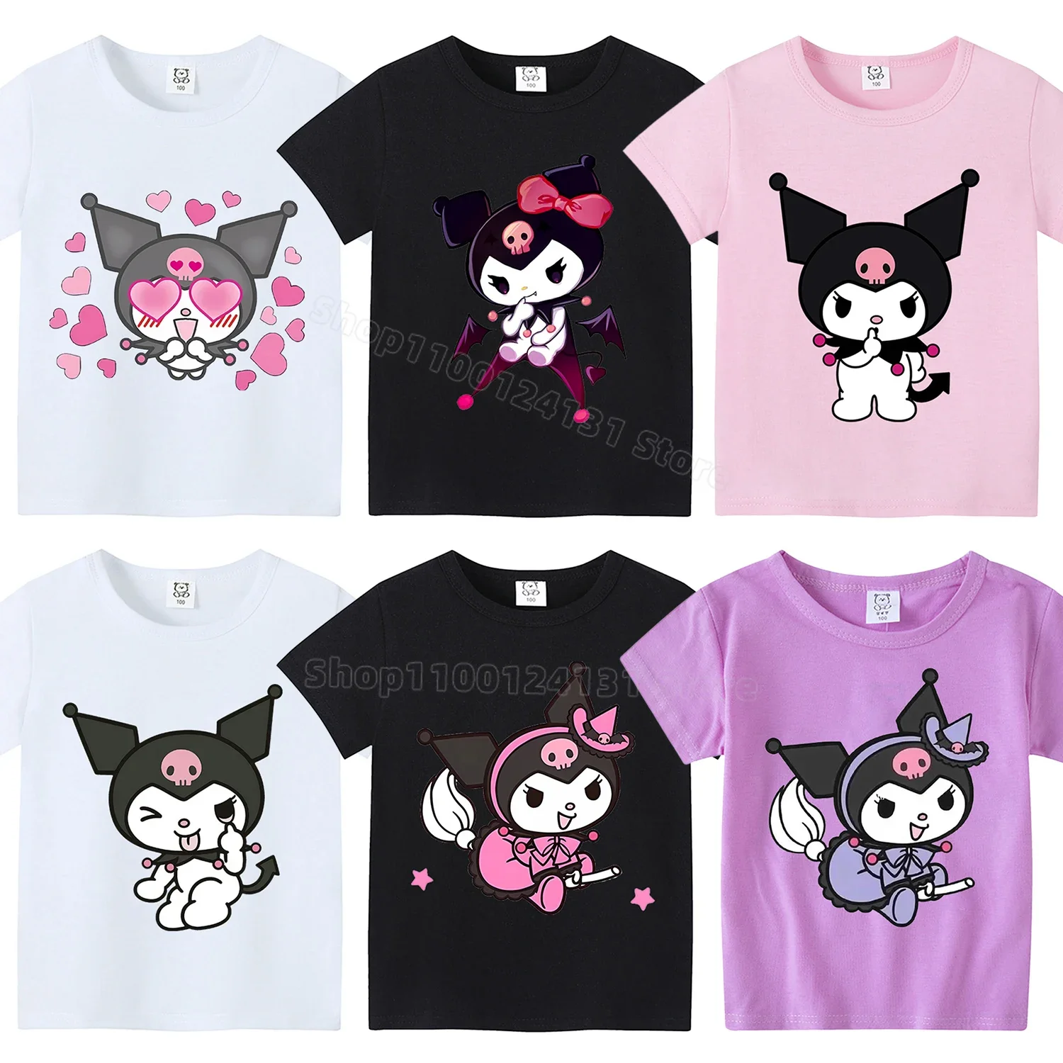 Comprar Camiseta Kuromi para niños, ropa de moda para niñas, bonita Camiseta de algodón, ropa Kawaii para bebés, camisa Base cómoda, disfraz de Anime