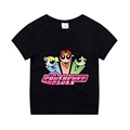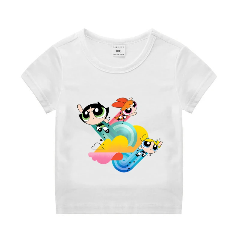 Camiseta de manga corta Kawaii The Powerpuffs para niñas, Tops de algodón informales para niños, ropa de moda de Anime, camiseta linda de dibujos animados