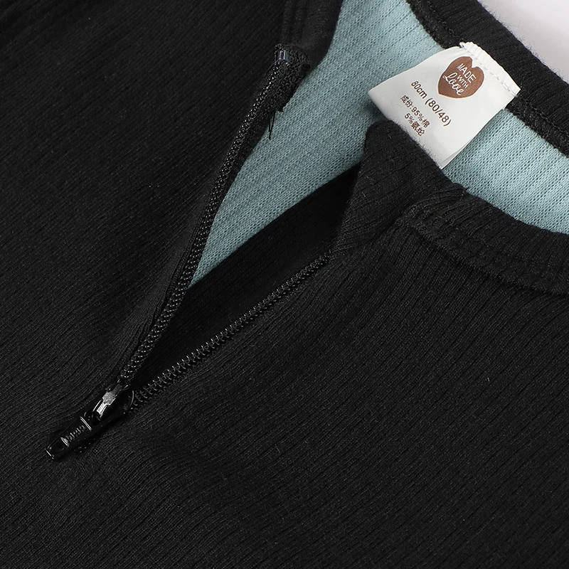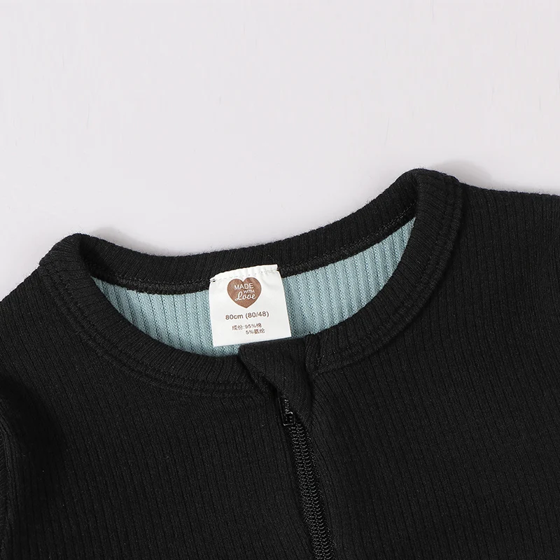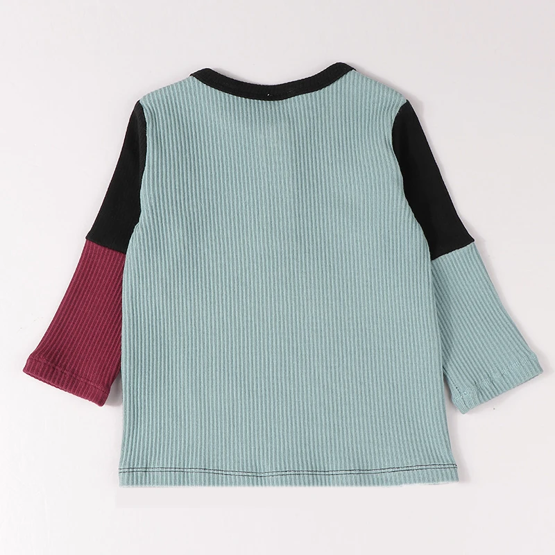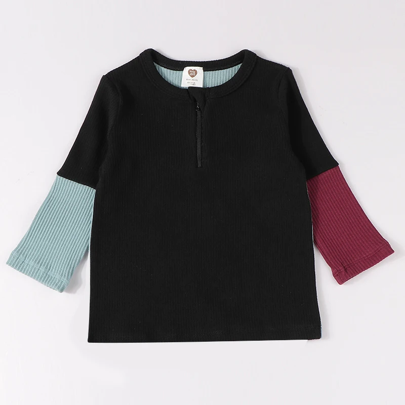 Comprar Camiseta de manga larga con contraste para niños, tops para bebés, ropa de algodón acanalada, cuello con cremallera, Otoño e Invierno