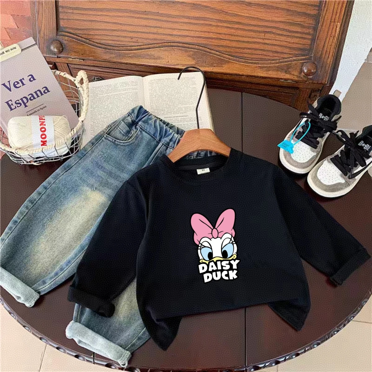 Camiseta de manga larga con diseño de pato y Margarita para niña, camisa básica informal para niño, Tops, jersey de cuello redondo, blusa, ropa para niño