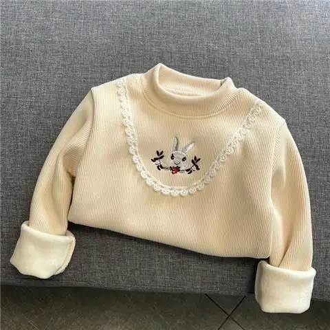 Camiseta de manga larga para niñas, Tops gruesos para niños, jersey de dibujos animados, ropa cálida de lana para otoño e invierno