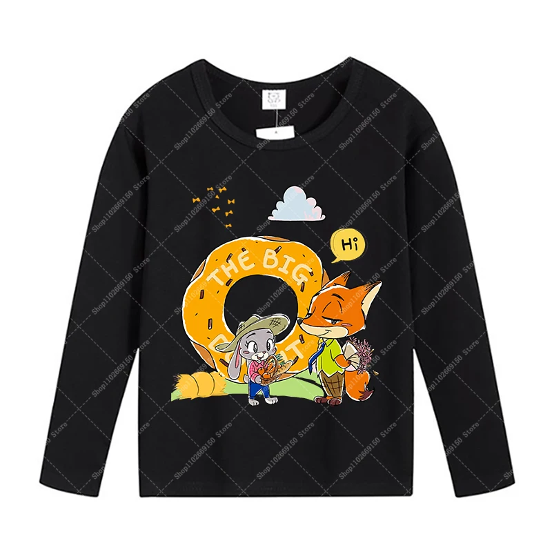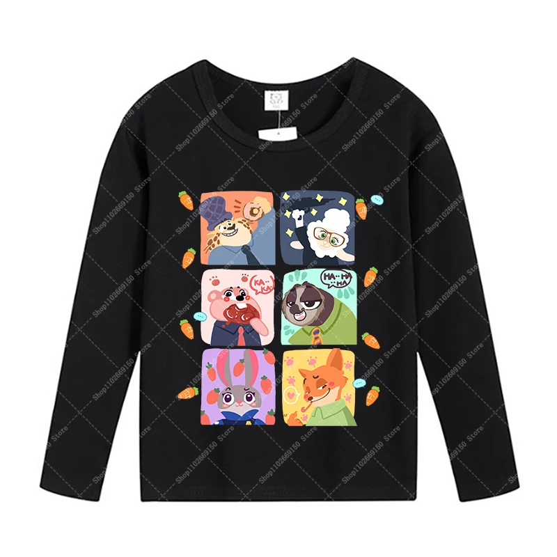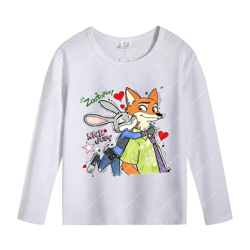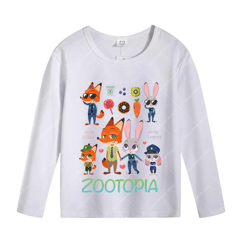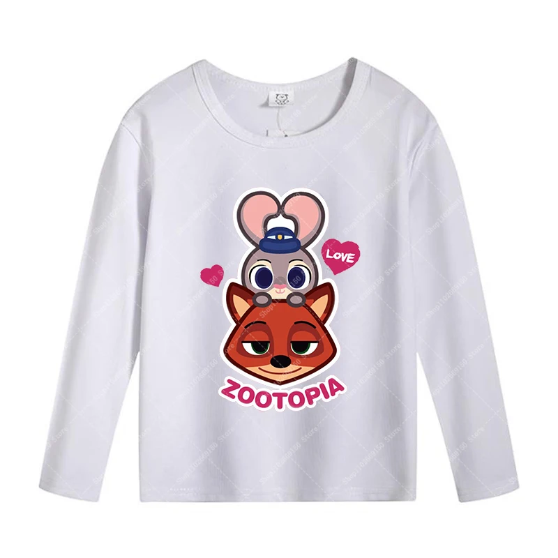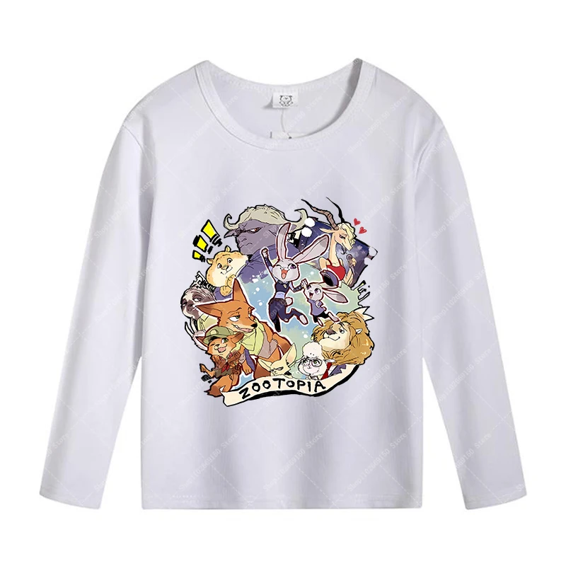 Camiseta de manga larga de Zootopia de Disney para niños, camiseta bonita de dibujos animados para niños, ropa de primavera y otoño, camiseta informal de Anime, regalos de navidad