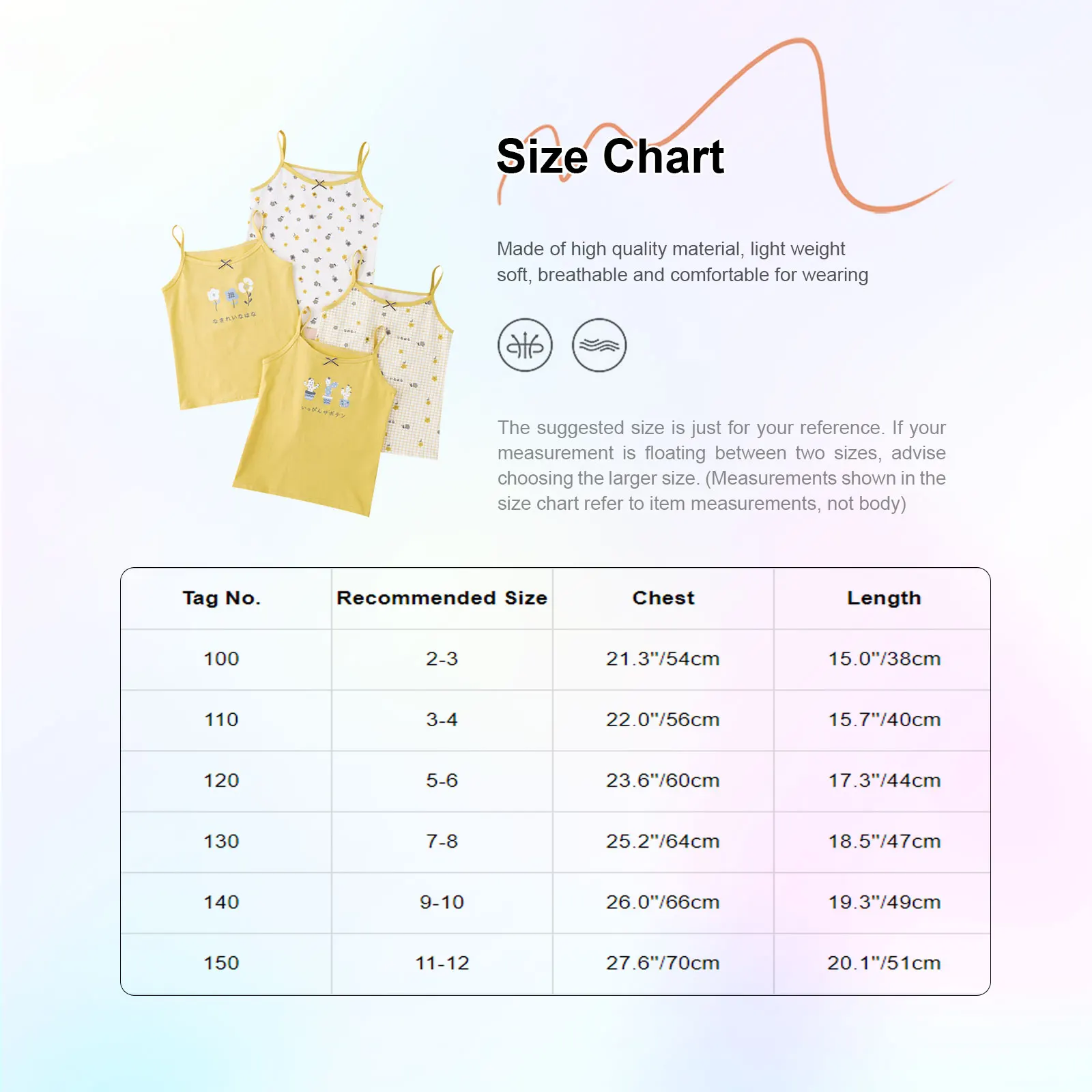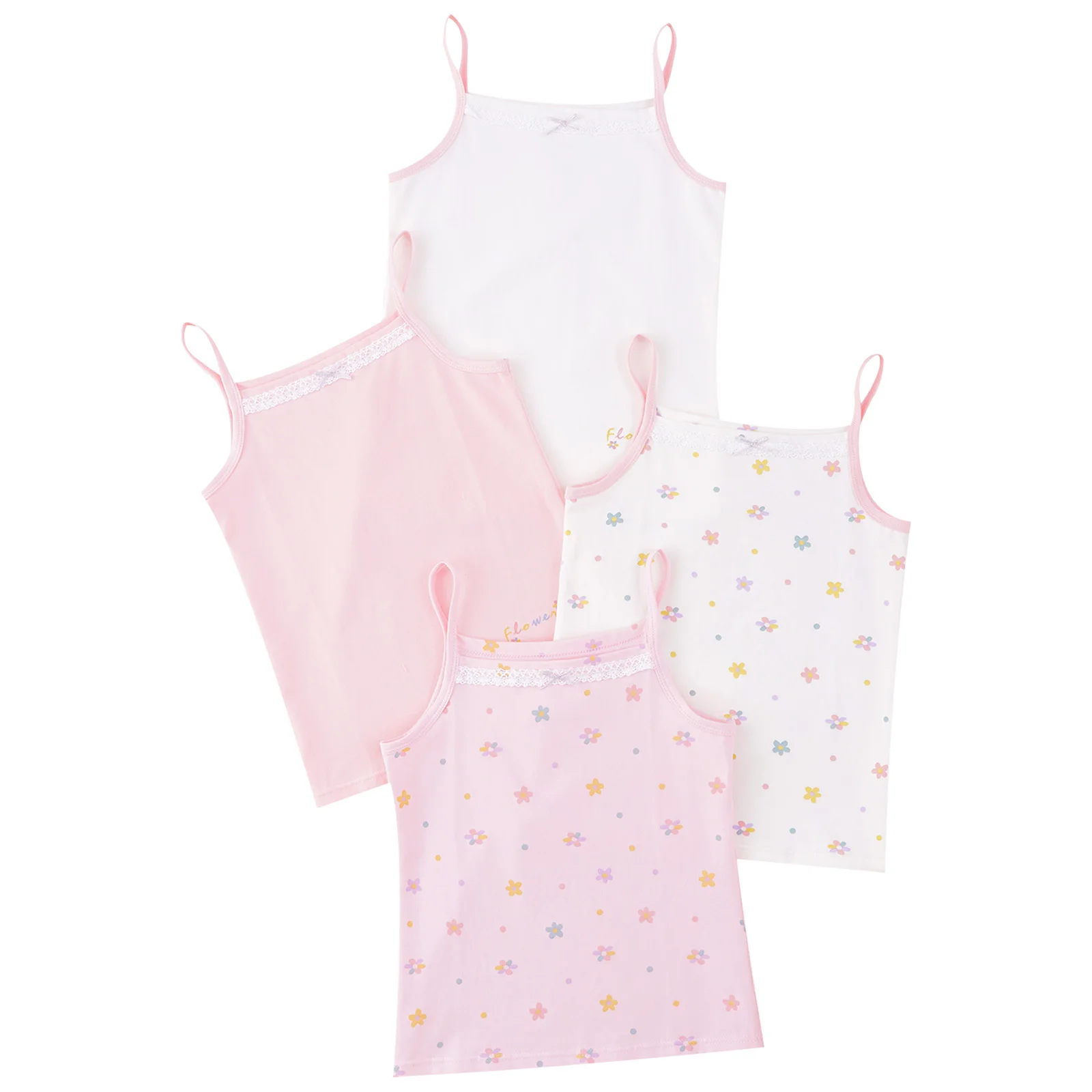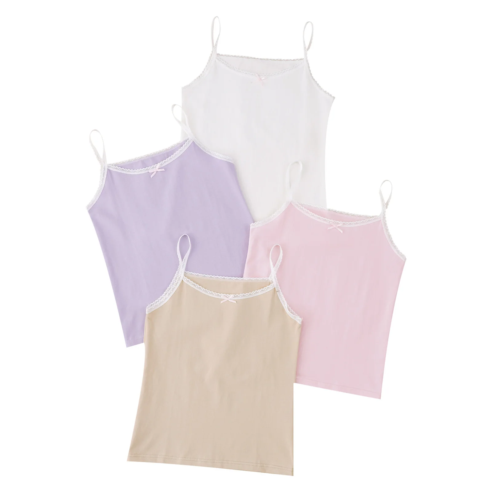 Camisola de tirantes finos para niña con un bonito lazo, 4 colores diferentes en un paquete para satisfacer las diferentes necesidades.