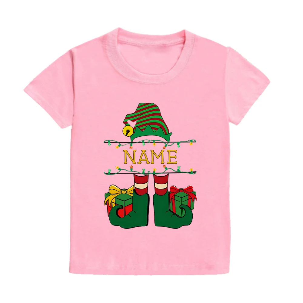 Camiseta de Navidad personalizada con nombre personalizado, camisa para niños pequeños, ropa para niños y niñas, camisas de Navidad para niños, camiseta de regalo para fiesta de Navidad para niños