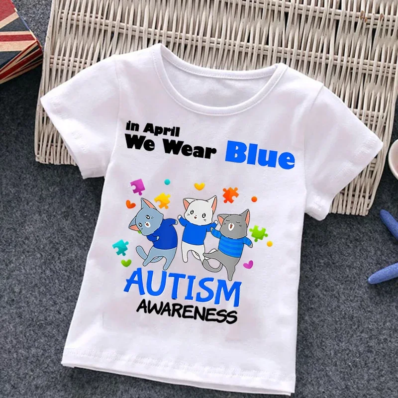 Comprar Camiseta para niño y niña con autismo, Tops de rompecabezas de dibujos animados, ropa de verano de algodón para bebé, camisetas de dinosaurio para niño pequeño