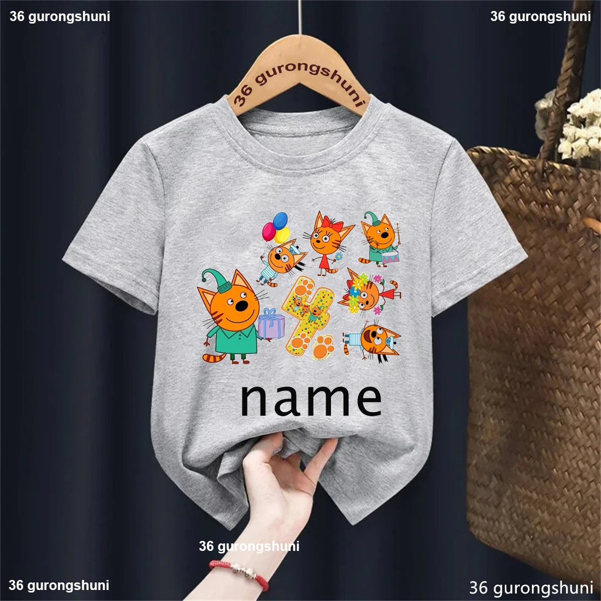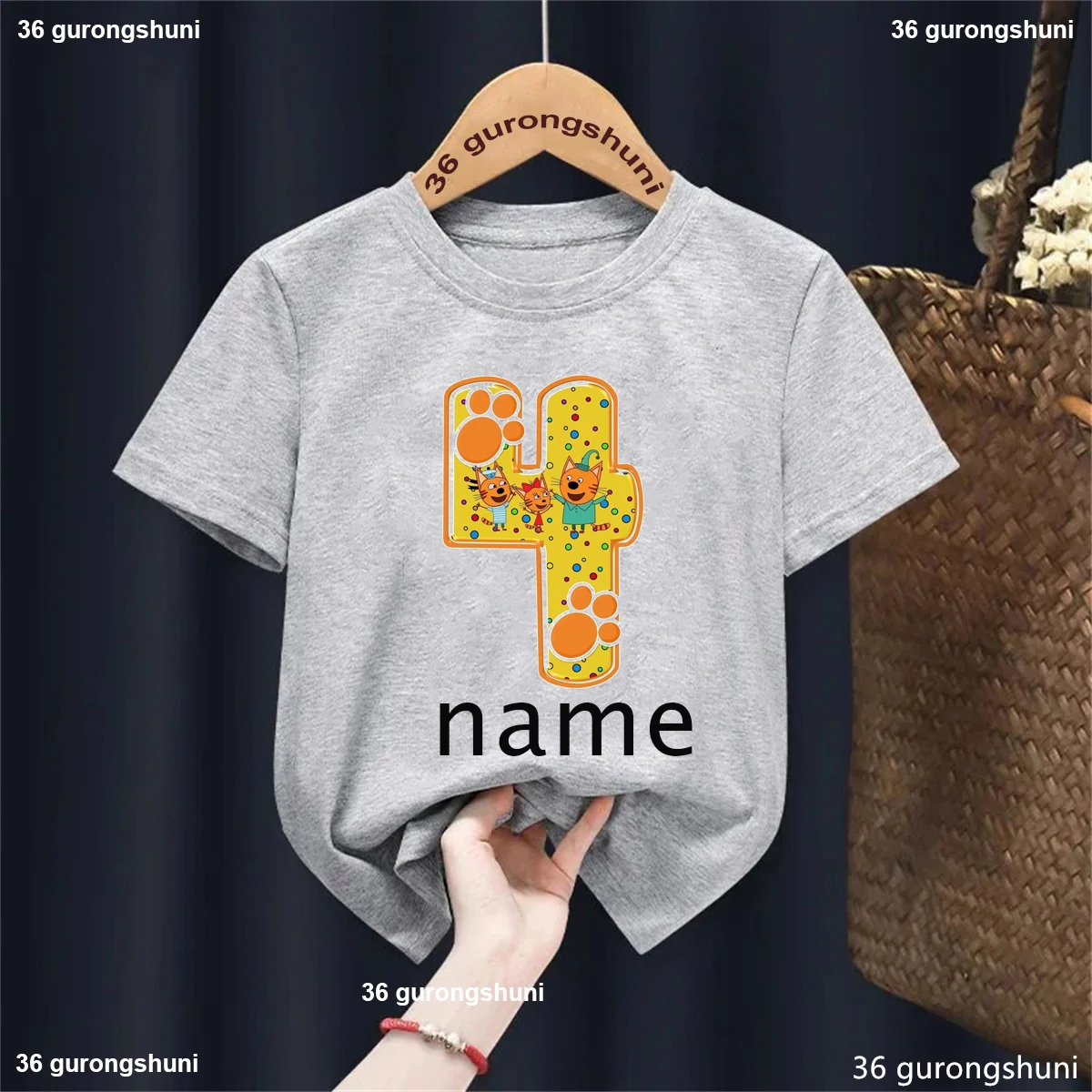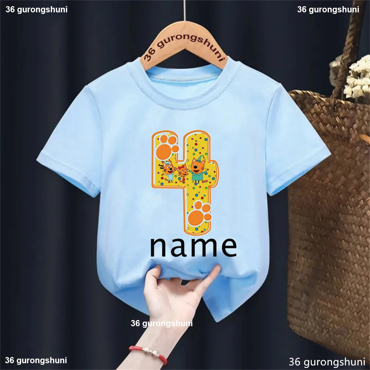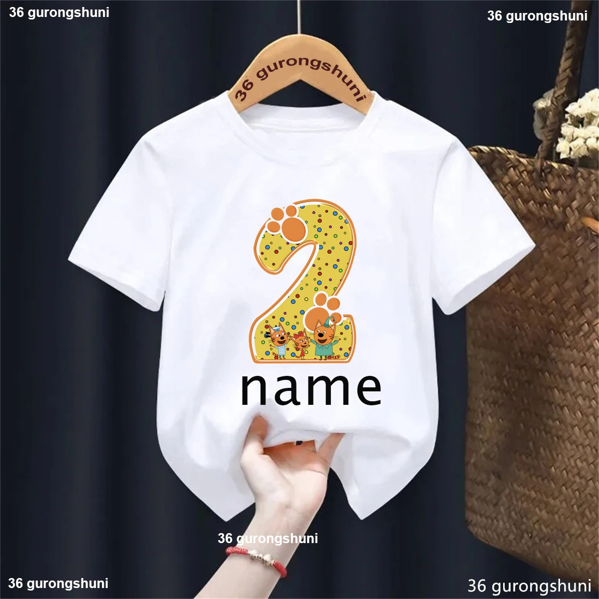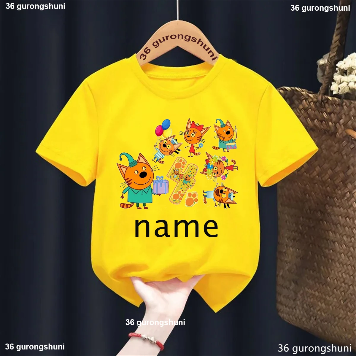Camiseta con nombre personalizado para niños y niñas, ropa divertida de gato familiar, Harajuku, color liso, regalo de cumpleaños, 1, 2, 3, 4. °