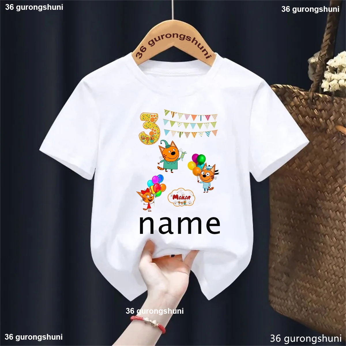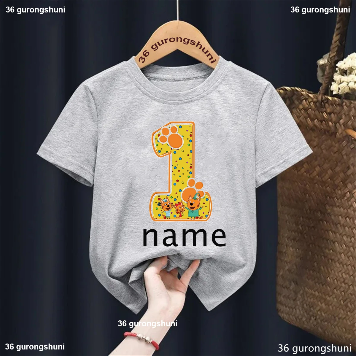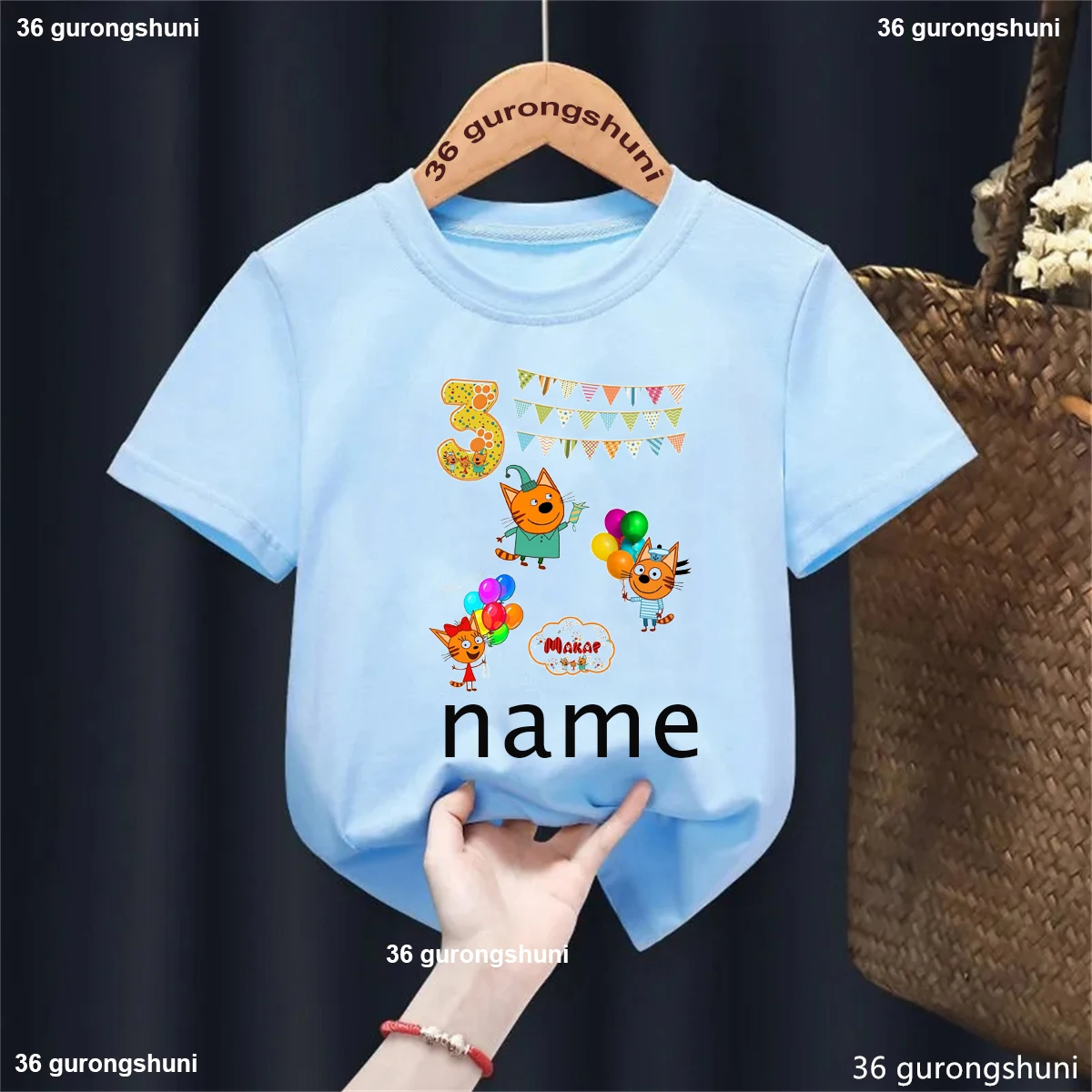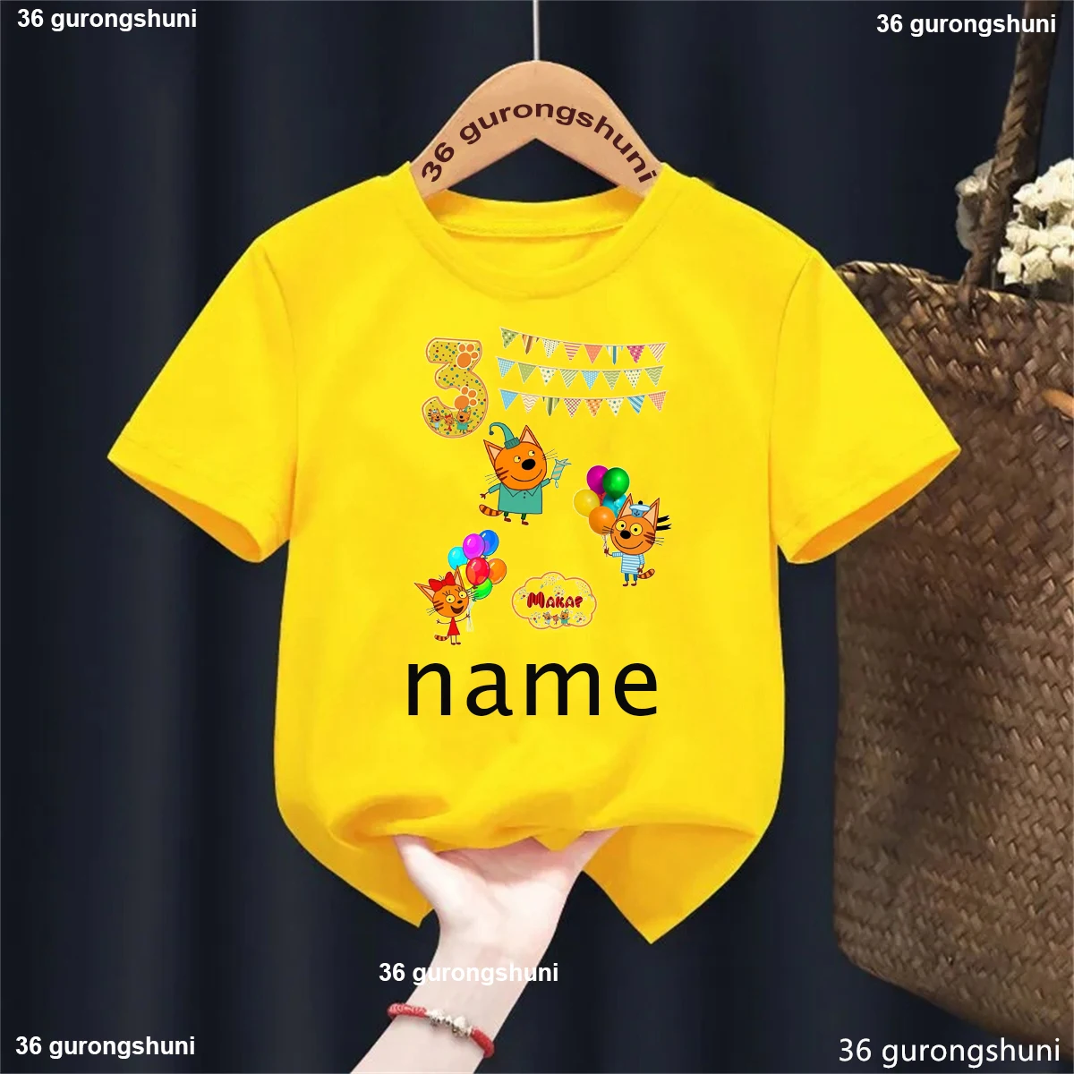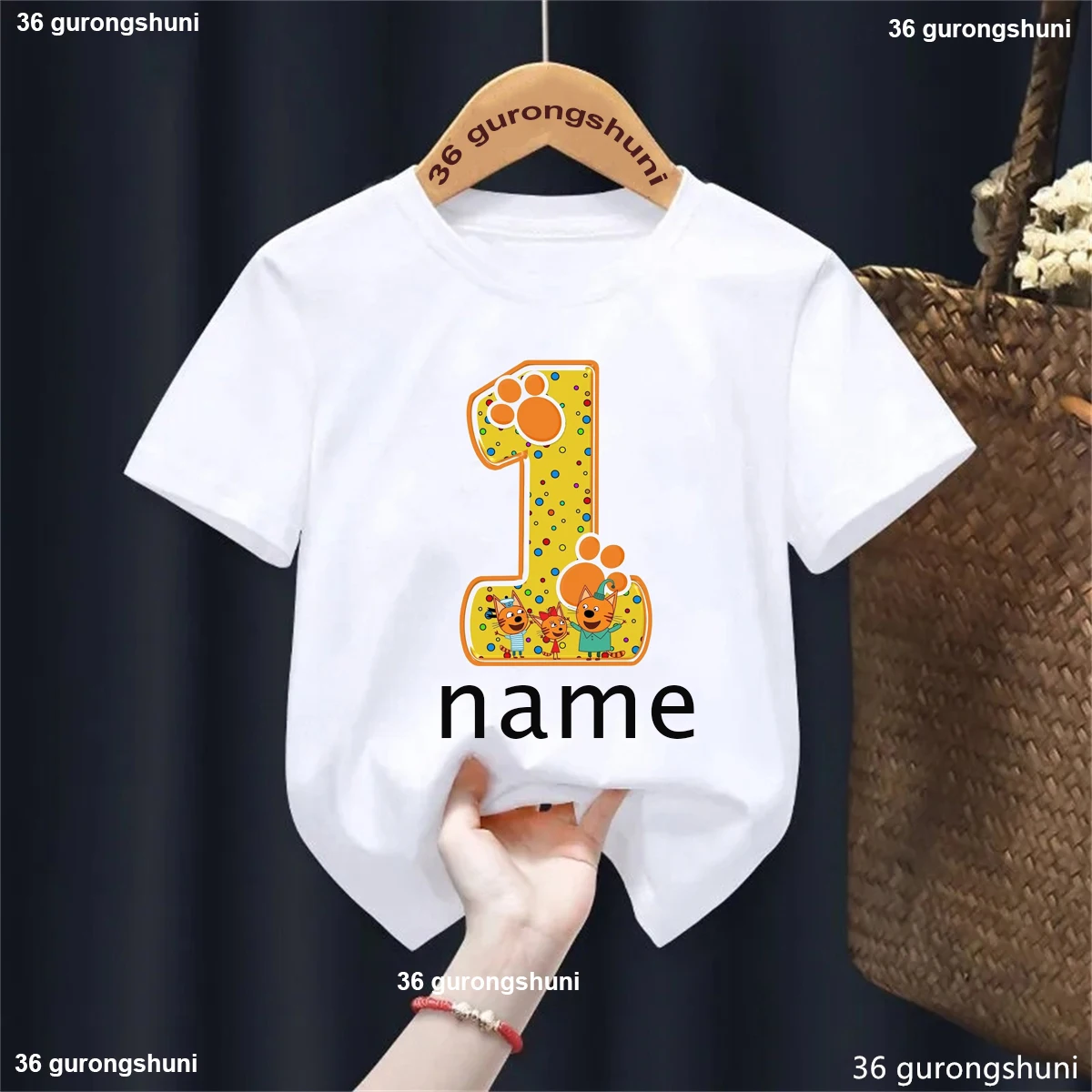 Camiseta con nombre personalizado para niños y niñas, ropa divertida de gato familiar, Harajuku, color liso, regalo de cumpleaños, 1, 2, 3, 4. °