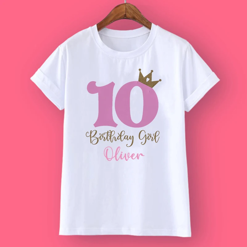 Comprar Camiseta personalizada con corona de cumpleaños para niñas, camiseta con nombre personalizado de 1 a 10 años, camiseta salvaje, camiseta de fiesta para niñas, ropa, regalos para niños, Tops de moda