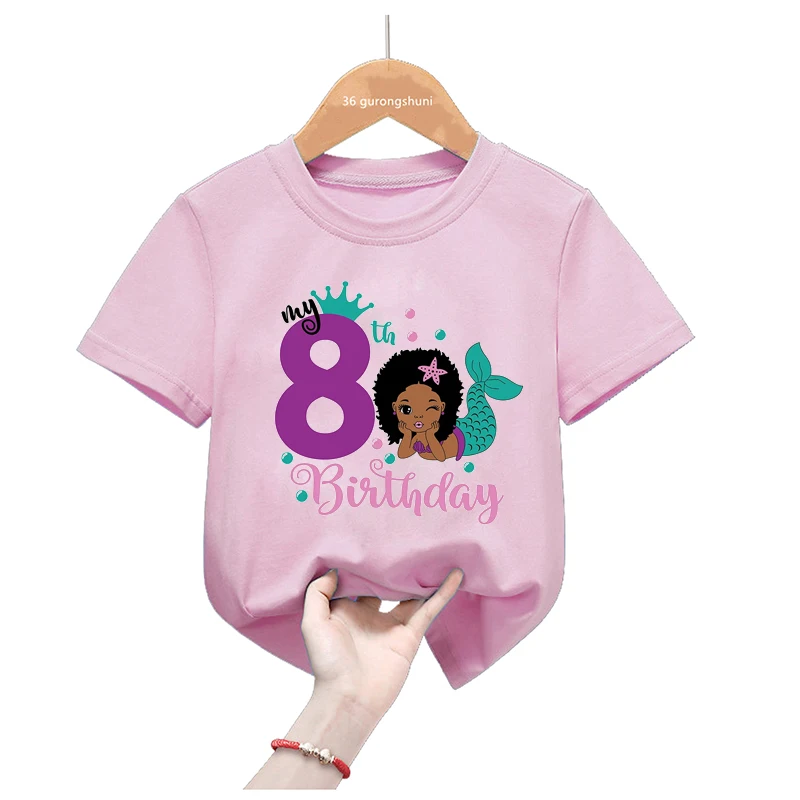 Comprar Camiseta de sirena My 1-9th Birthday para niñas, camiseta negra de melanina, regalo de fiesta de cumpleaños, ropa Harajuku rosa, Tops 2023