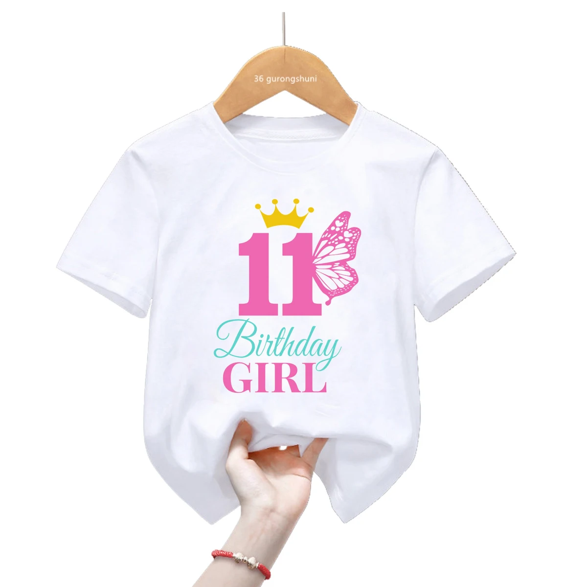 Camiseta con tema de corona de princesa bonita, camiseta de feliz cumpleaños para niñas de 1 a 11 años, regalo de cumpleaños, ropa para niños, camisetas de manga corta