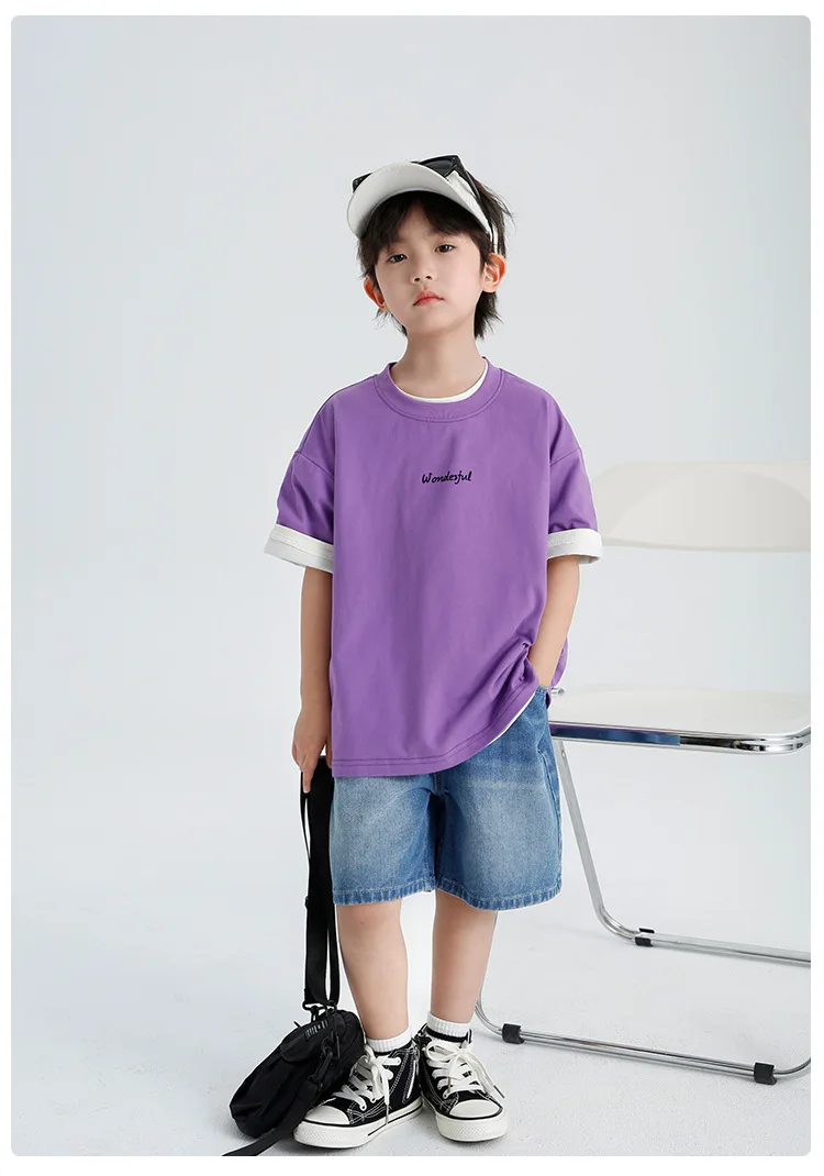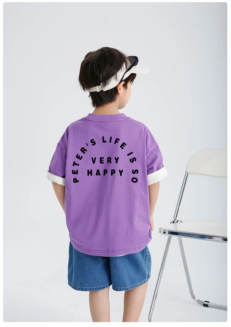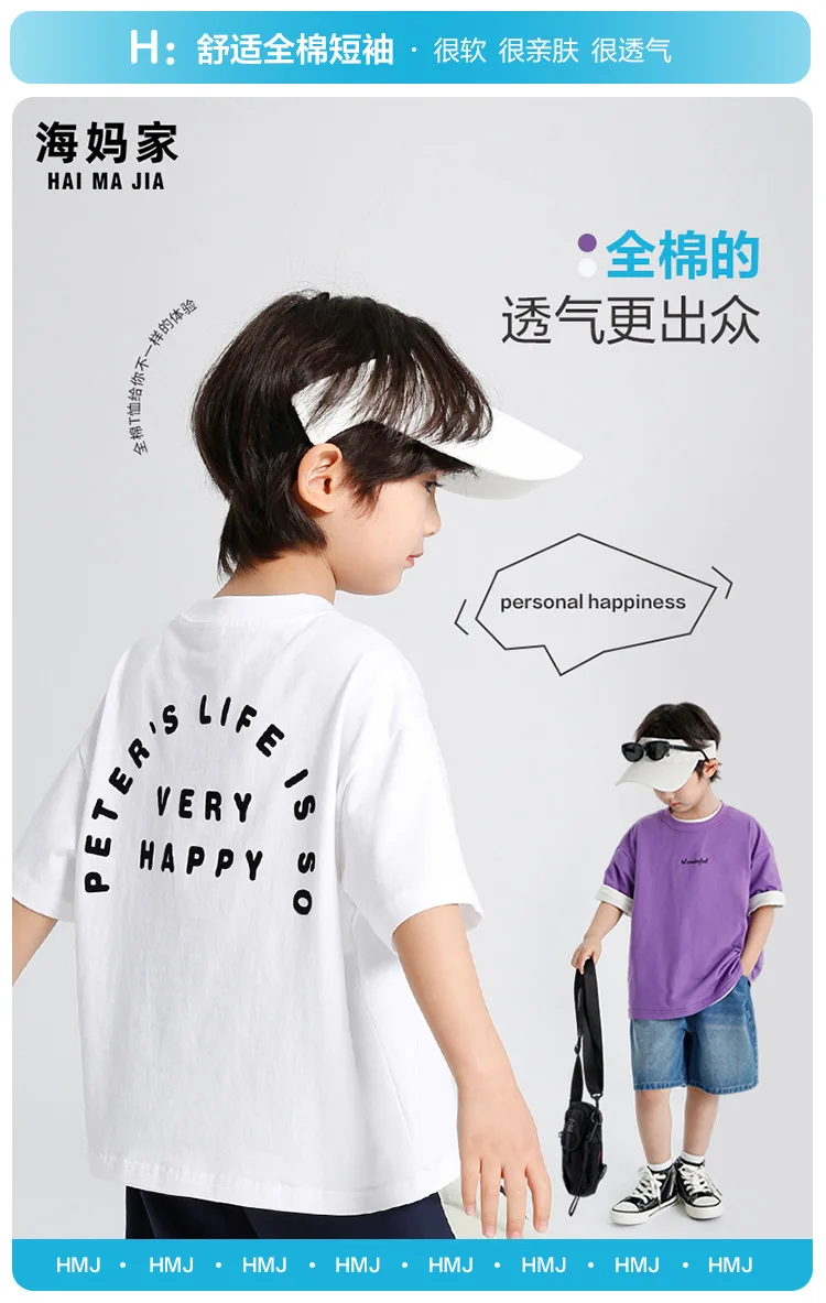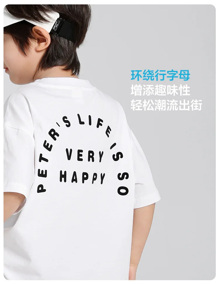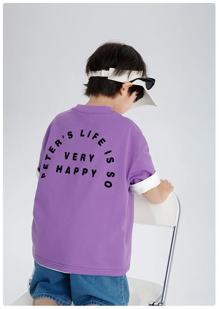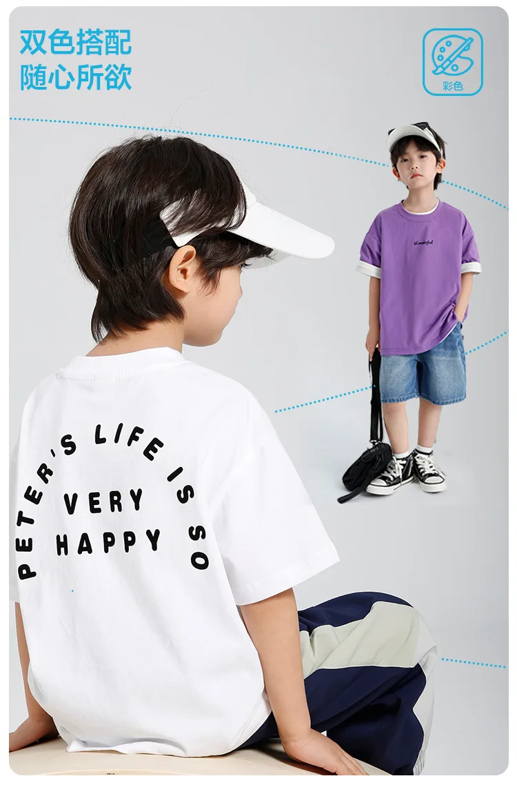Camiseta de verano de manga corta de algodón puro con estampado de letras para niños, camisetas para niños de 110-160cm