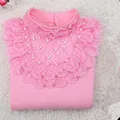 Comprar Camisetas básicas de algodón para niños, ropa para niñas pequeñas, camisetas informales florales de manga larga, camisetas de encaje para niños