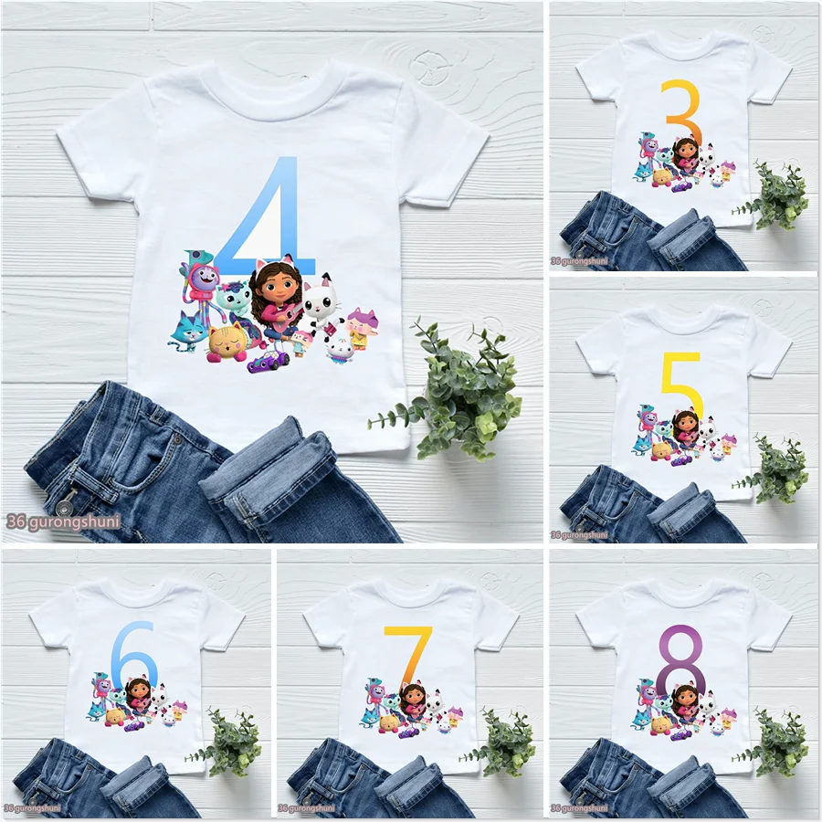 Comprar Camisetas bonitas para niños de 2 a 12 años, regalo de cumpleaños, Gabbys, casa de muñecas, camisetas para niñas, ropa de fiesta de feliz cumpleaños