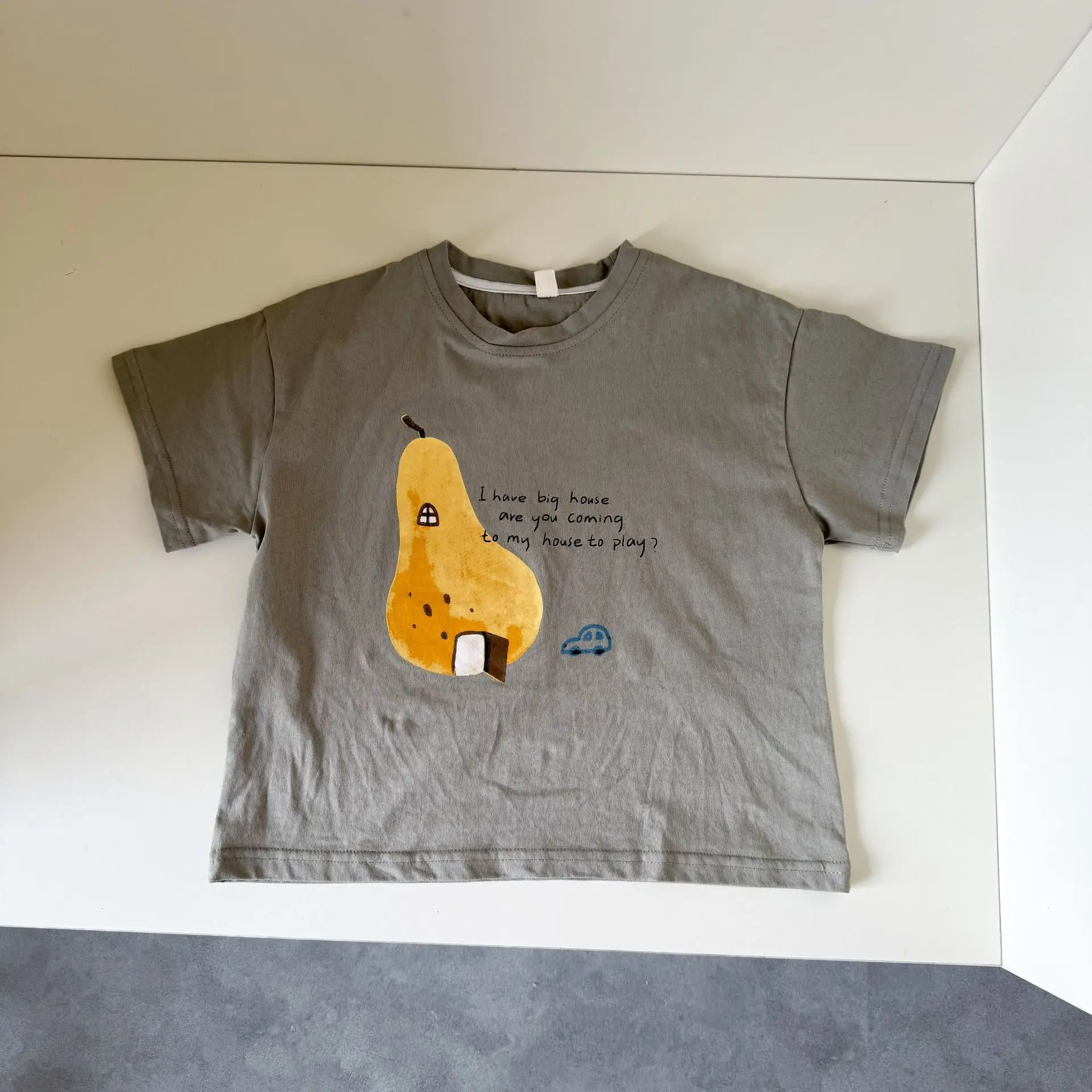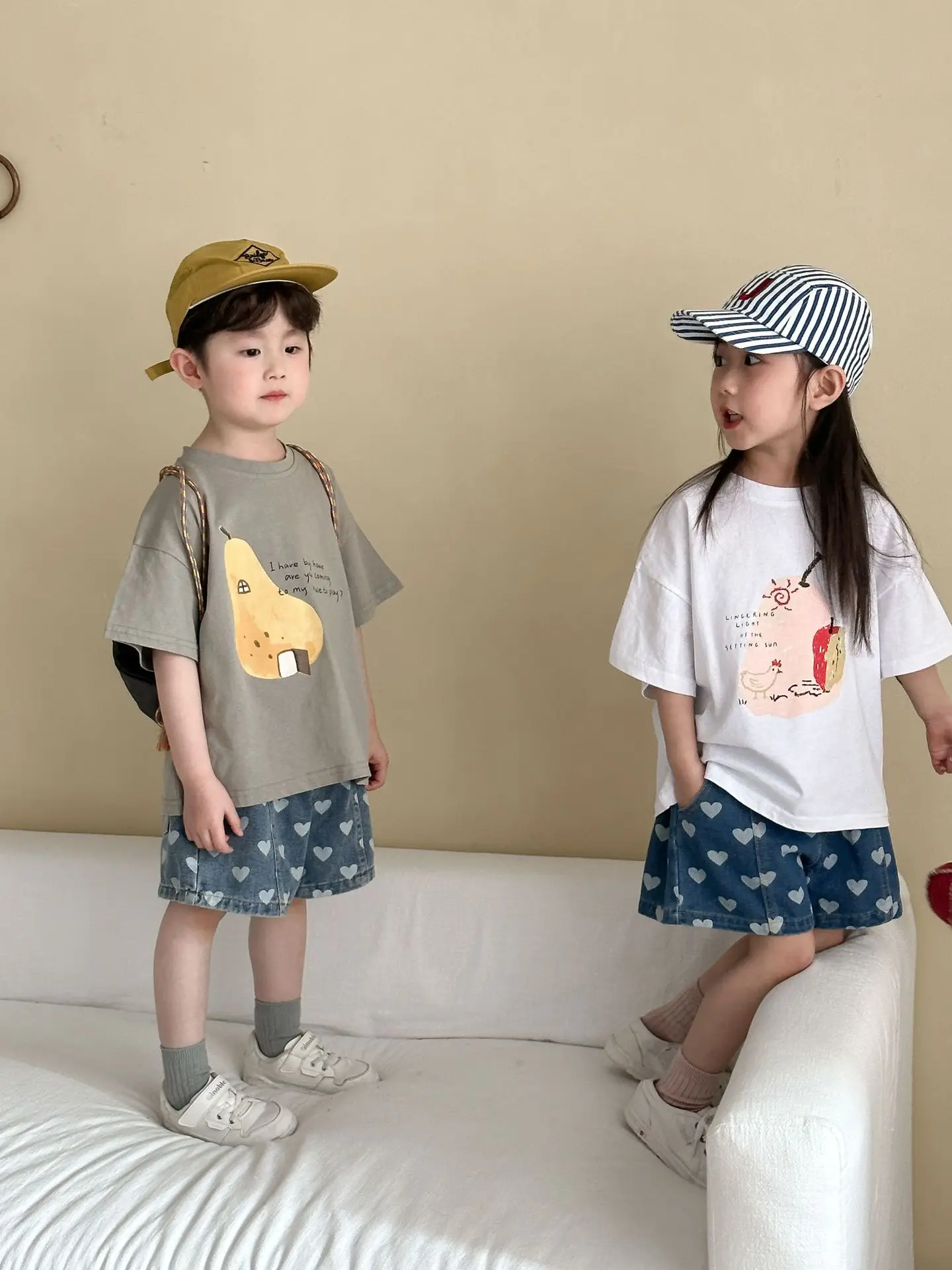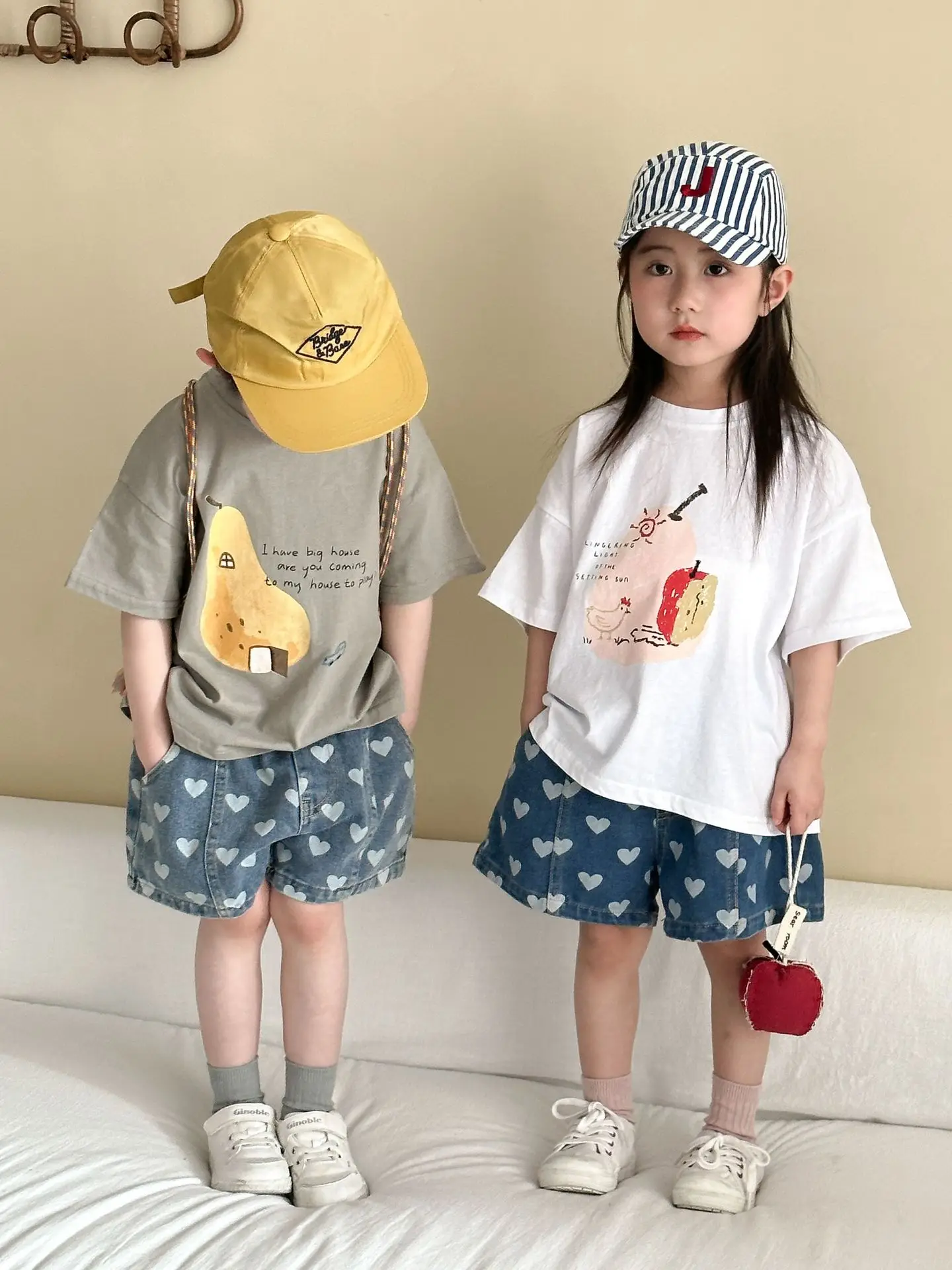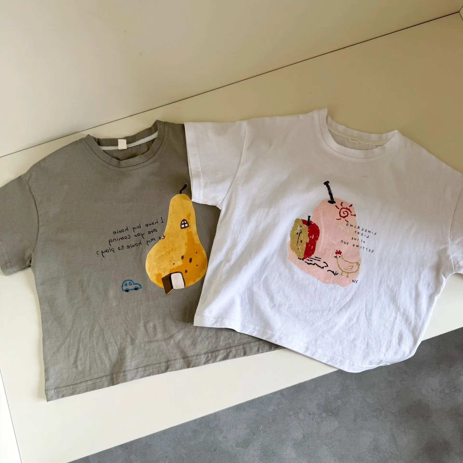 Camisetas coreanas de manga corta para niños, camisetas de algodón con estampado de frutas para niñas pequeñas, ropa para bebés