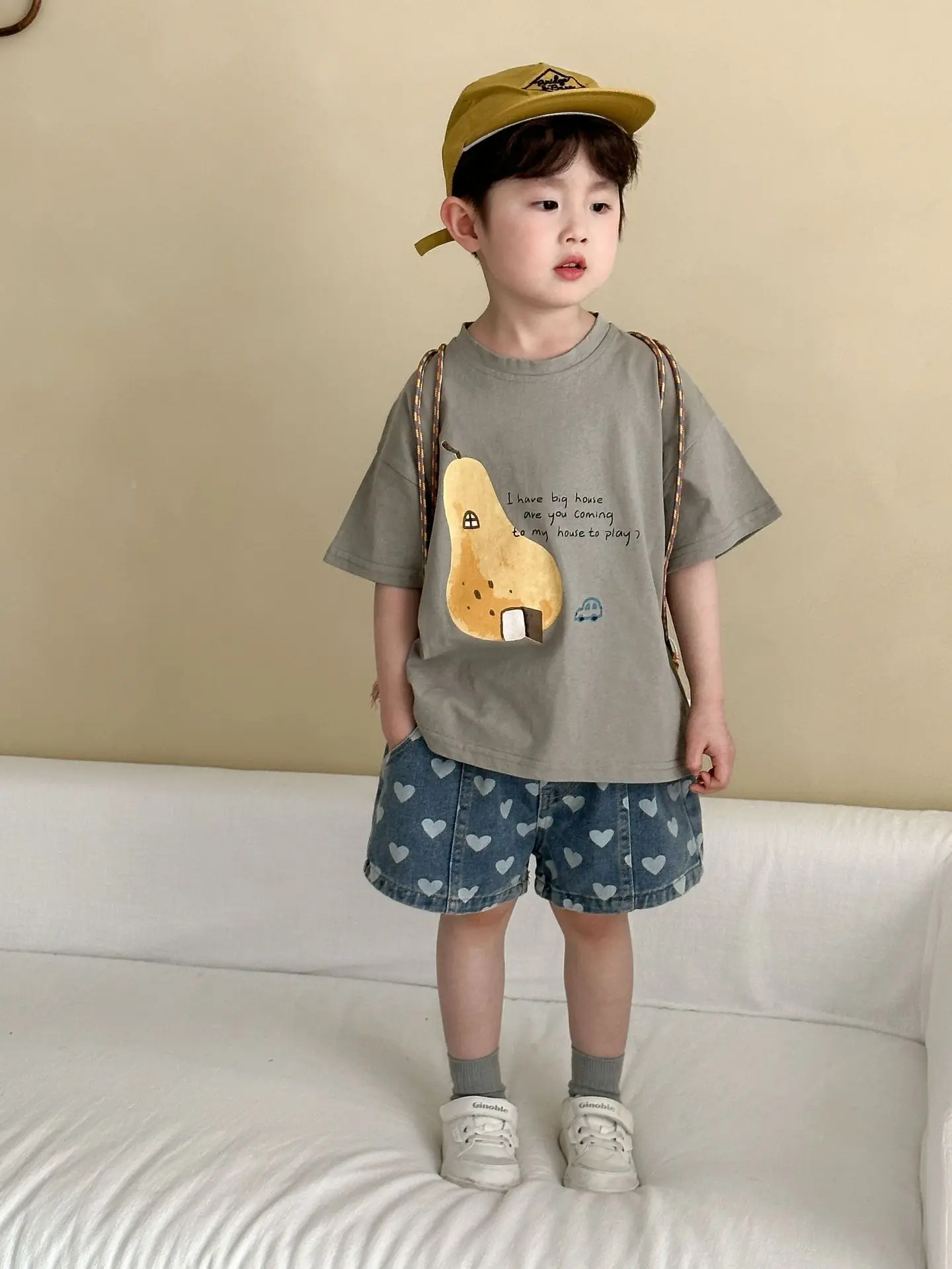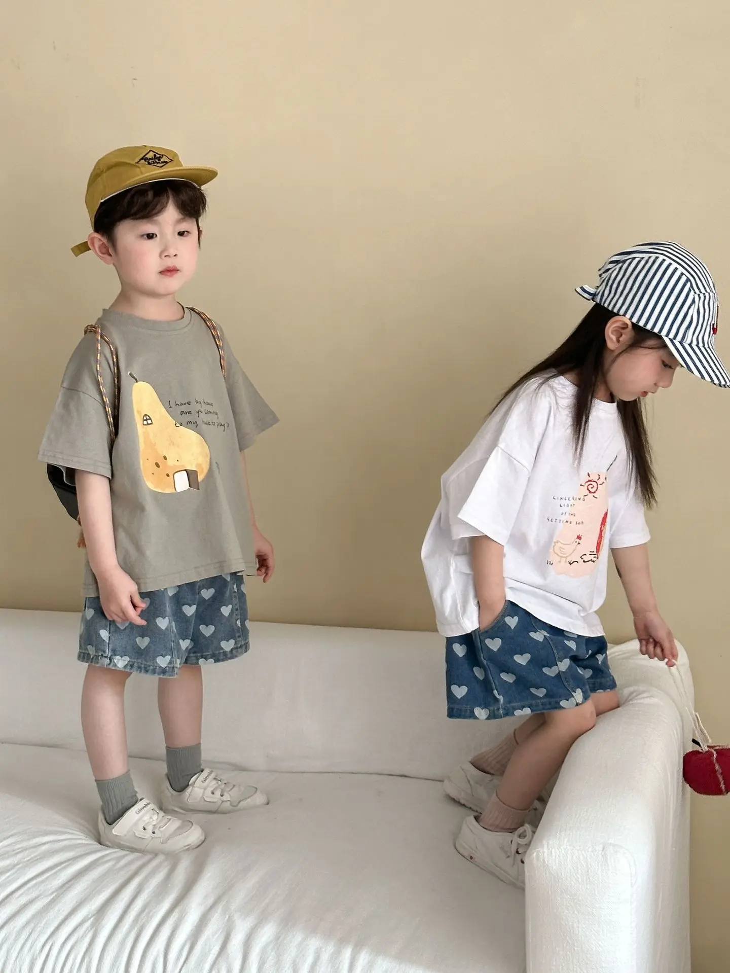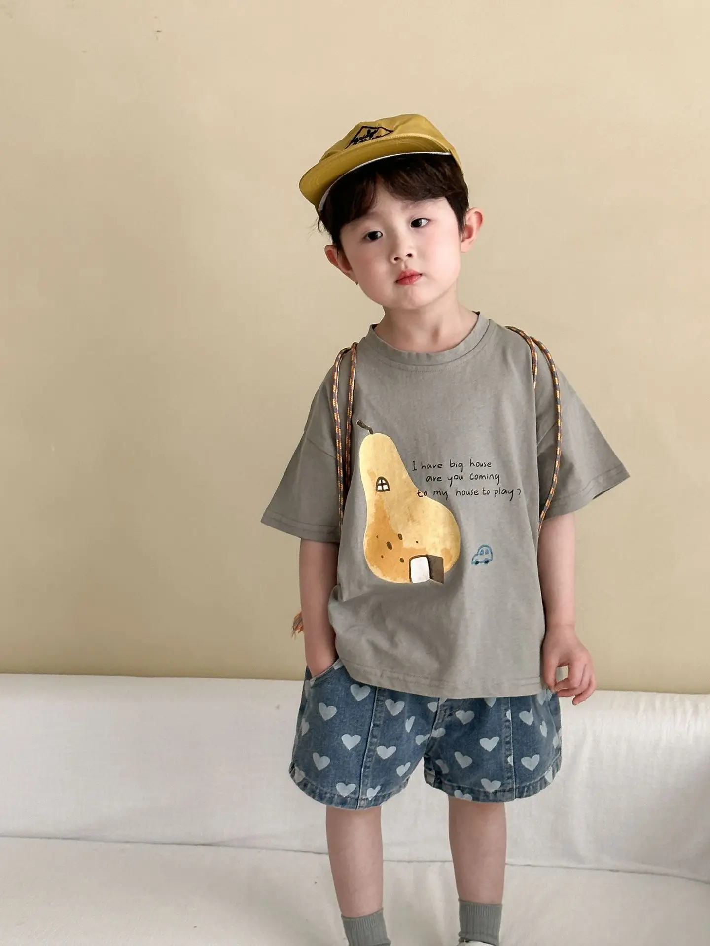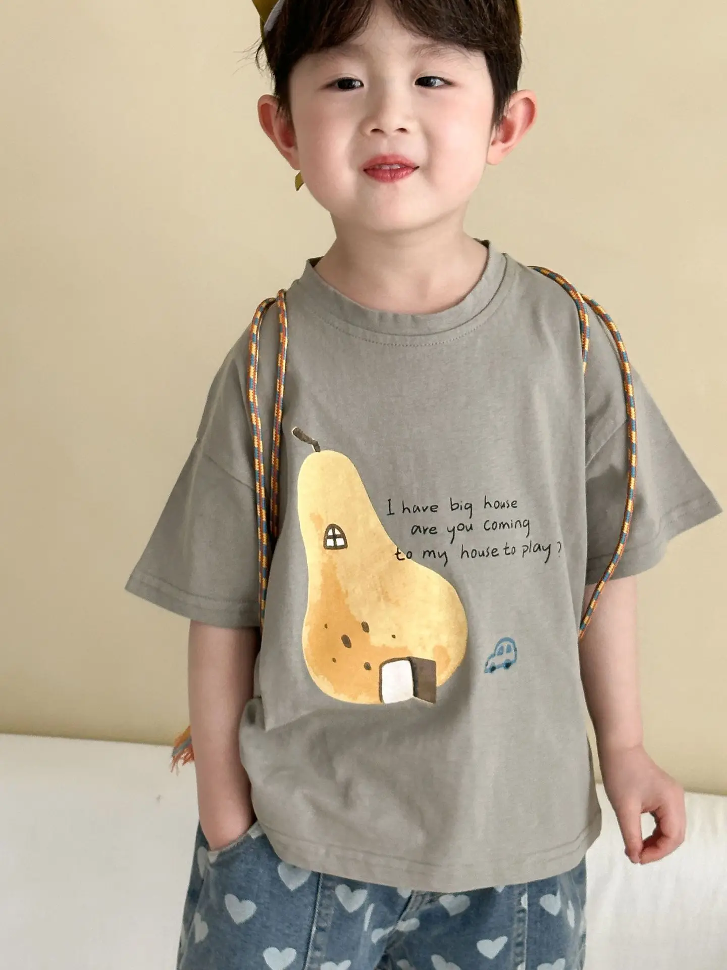 Camisetas coreanas de manga corta para niños, camisetas de algodón con estampado de frutas para niñas pequeñas, ropa para bebés