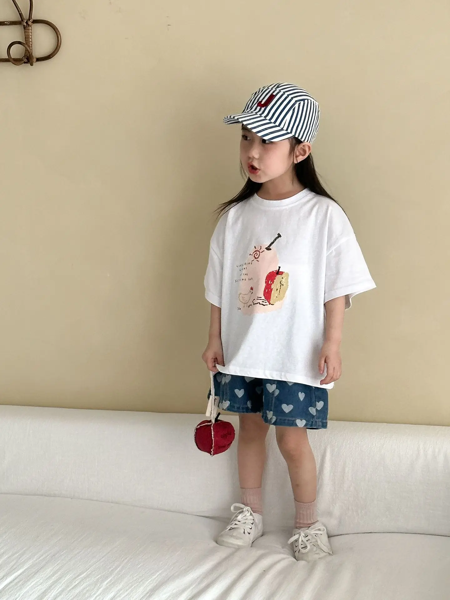 Camisetas coreanas de manga corta para niños, camisetas de algodón con estampado de frutas para niñas pequeñas, ropa para bebés - imagen 1