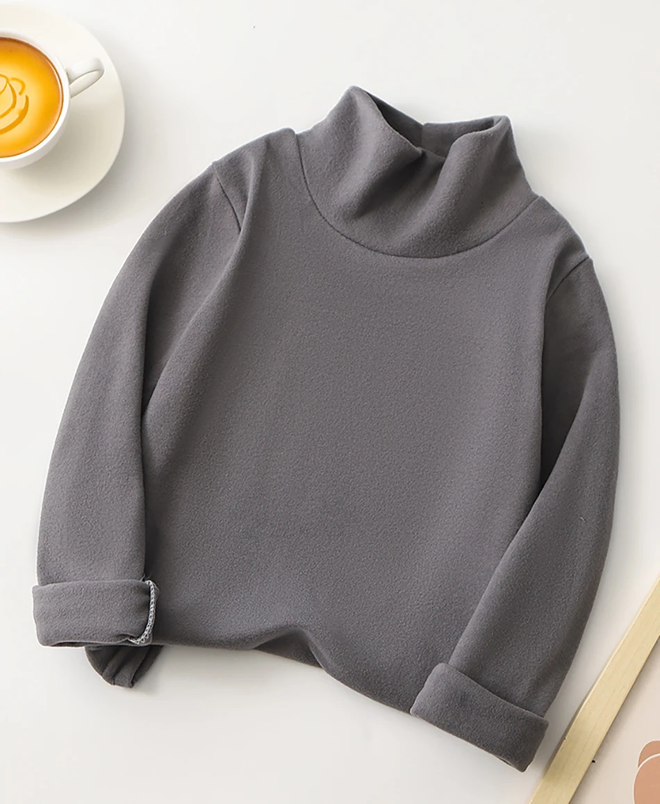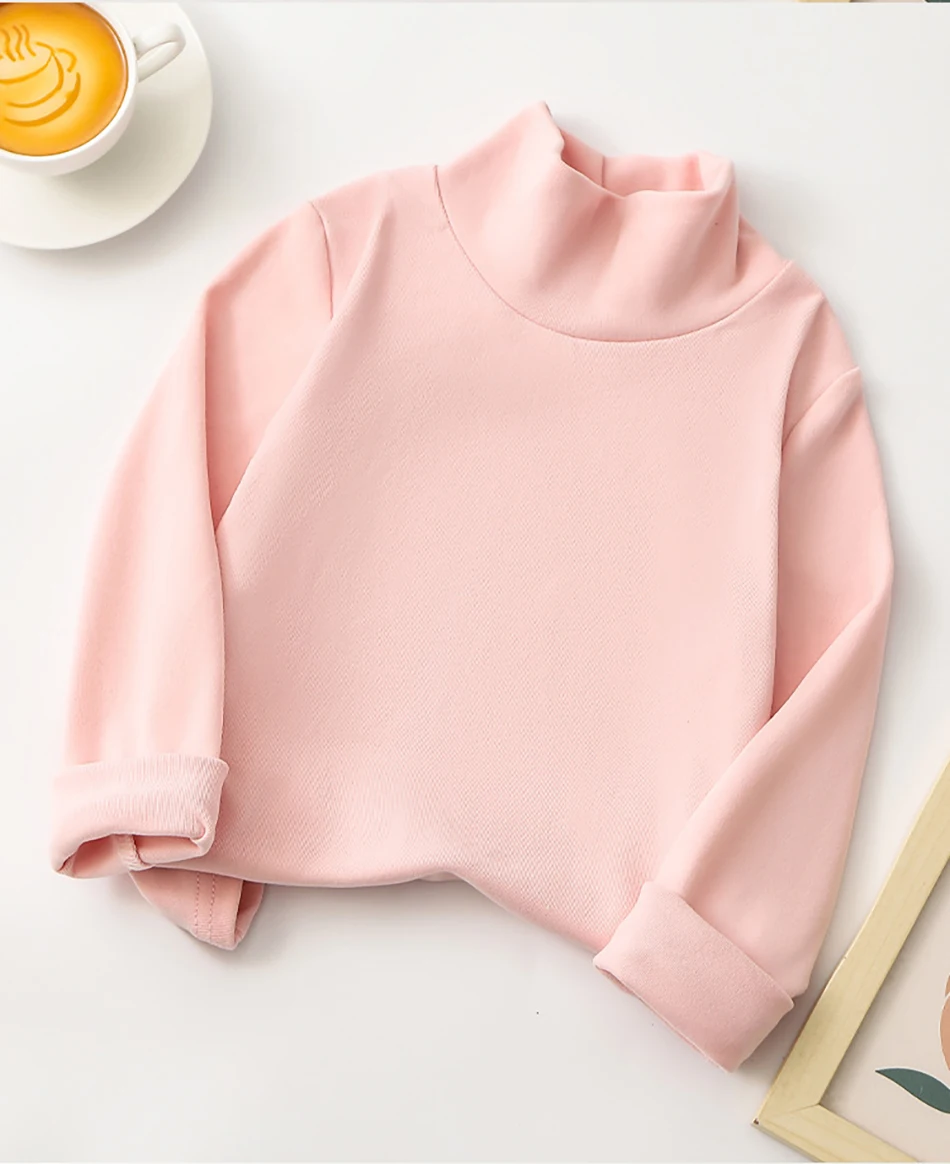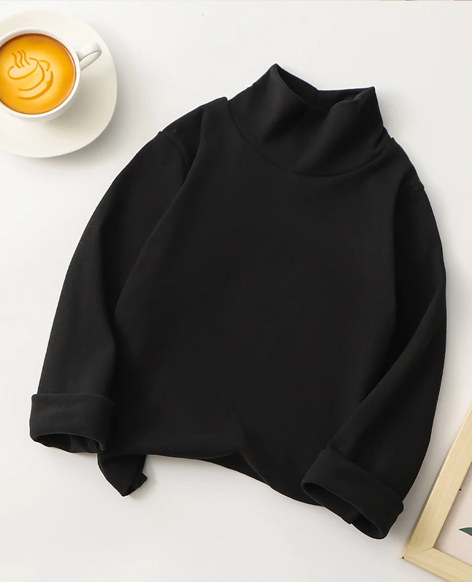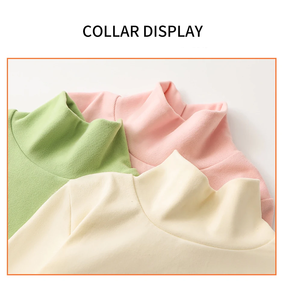 Nombre: Camiseta de manga larga para niños a la moda, camisetas de Base de Color sólido Unisex con cuello medio alto, ropa versátil diaria para niños
