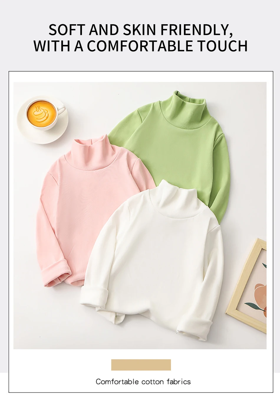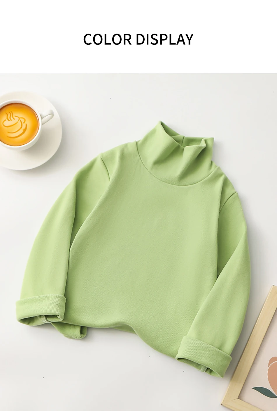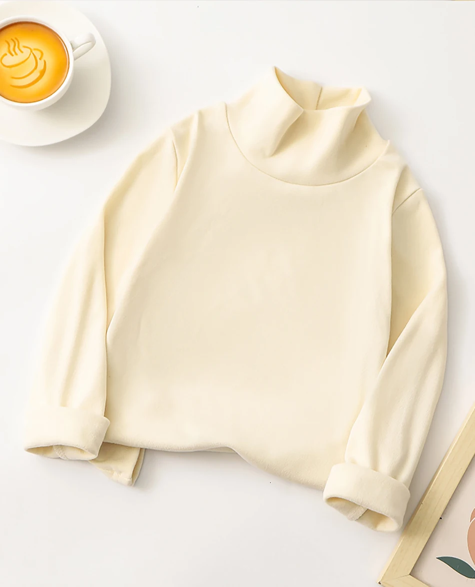Nombre: Camiseta de manga larga para niños a la moda, camisetas de Base de Color sólido Unisex con cuello medio alto, ropa versátil diaria para niños
