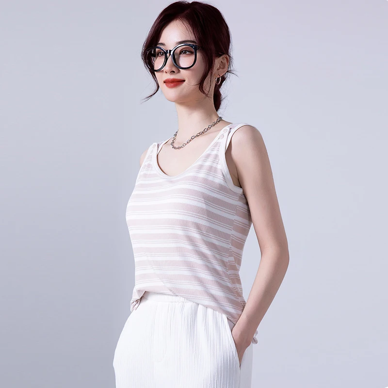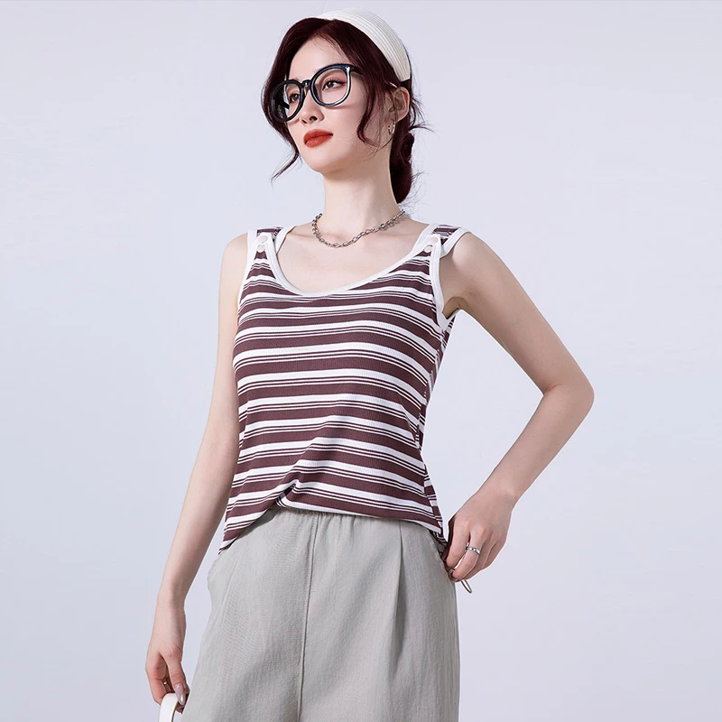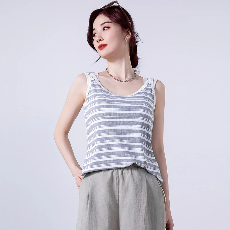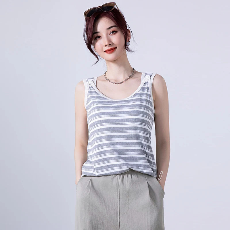 Camisetas sin mangas a rayas para lactancia de maternidad, camiseta informal para lactancia, camisetas de maternidad con espalda cruzada para lactancia para mujer