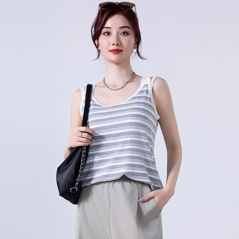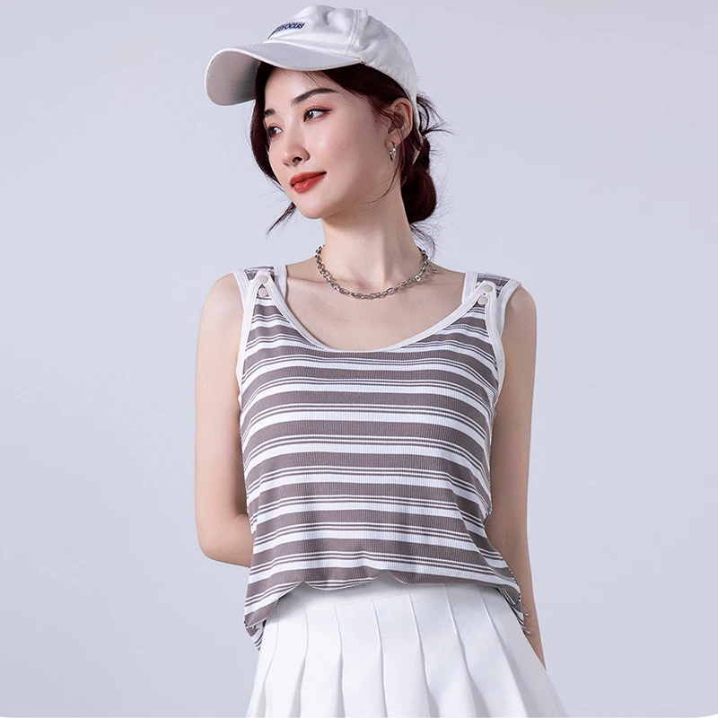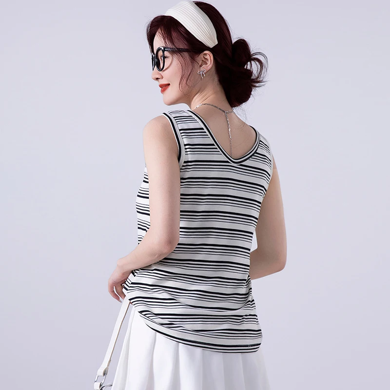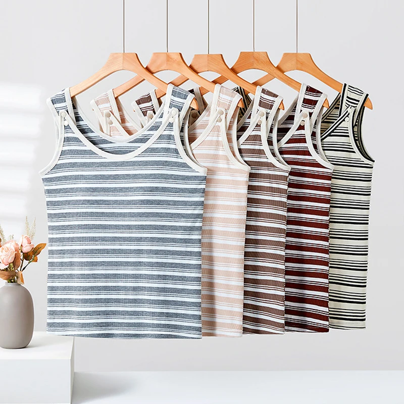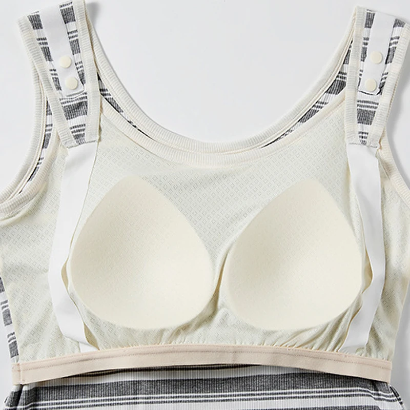 Comprar Camisetas sin mangas a rayas para lactancia de maternidad, camiseta informal para lactancia, camisetas de maternidad con espalda cruzada para lactancia para mujer