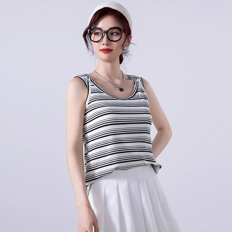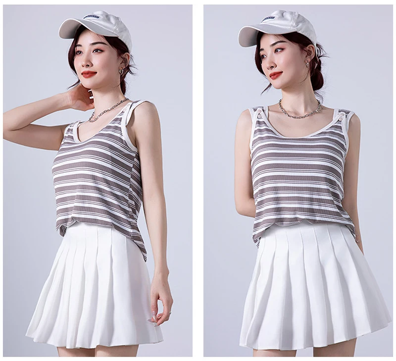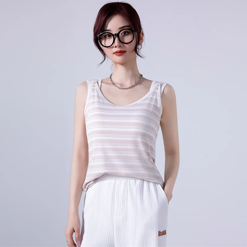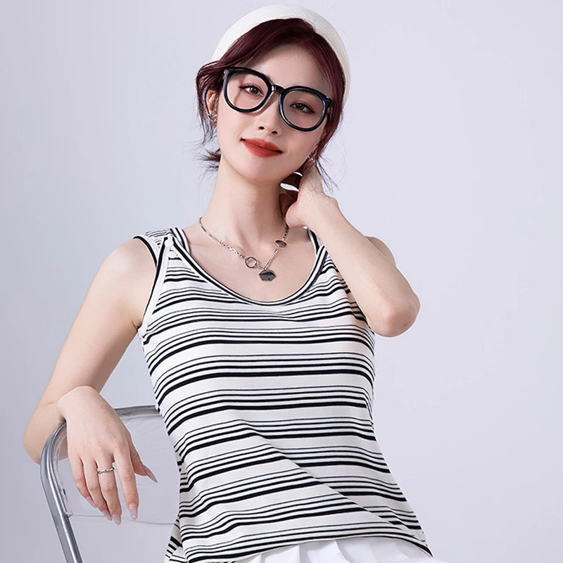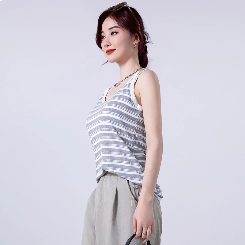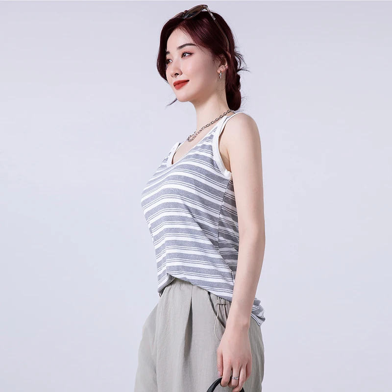 Comprar Camisetas sin mangas a rayas para lactancia de maternidad, camiseta informal para lactancia, camisetas de maternidad con espalda cruzada para lactancia para mujer