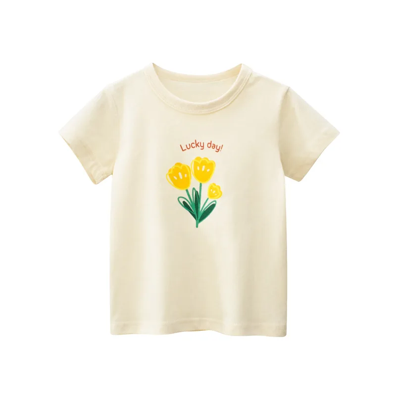 Camisetas para niños de 2 a 7 años, camiseta de manga corta para niñas, ropa de verano, ropa para bebés, Tops con estampado de flores, triangulación de envíos