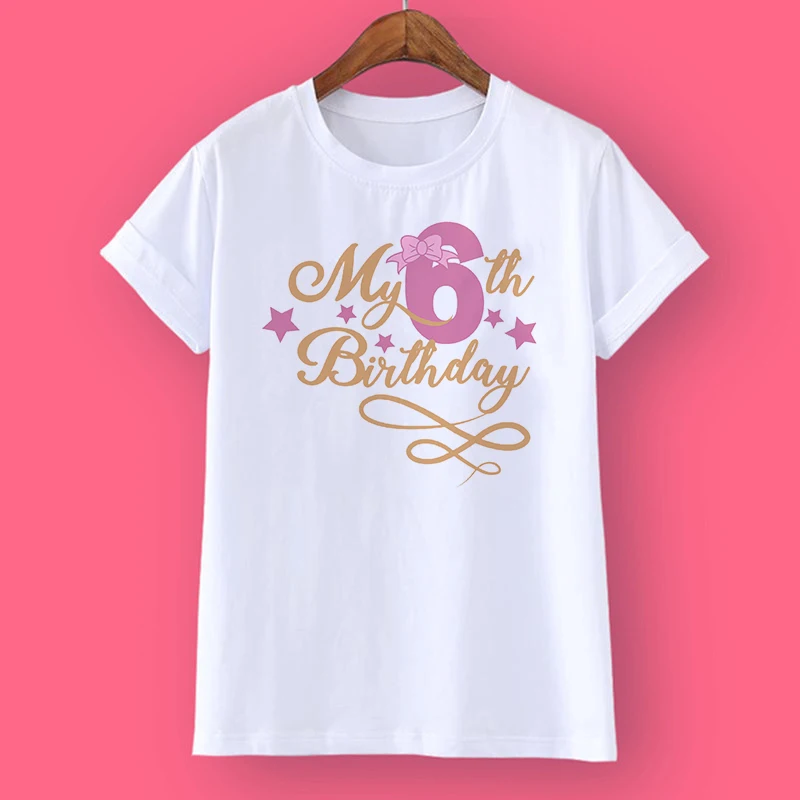 Camisetas de verano con número de cumpleaños para niñas, camiseta de manga corta, talla 1-12 años, ropa de fiesta para niños, Tops, regalos de cumpleaños para niñas