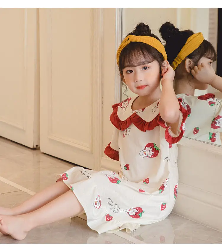 Comprar Camisón fino de manga corta para niñas, pijamas de encaje de algodón para niños, estilo princesa, con solapa para bebé, servicio a domicilio