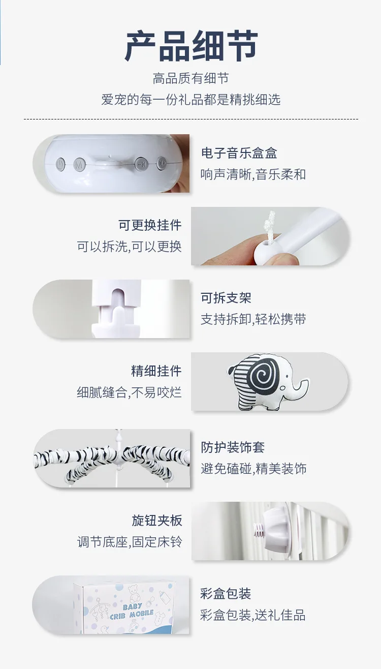 Campana para cama de elefante para bebé de 0 a 1 año, sonido, Luna, música, campana para mesita de noche, muñeca de juguete, juguete cómodo para bebé, regalo para recién nacidos