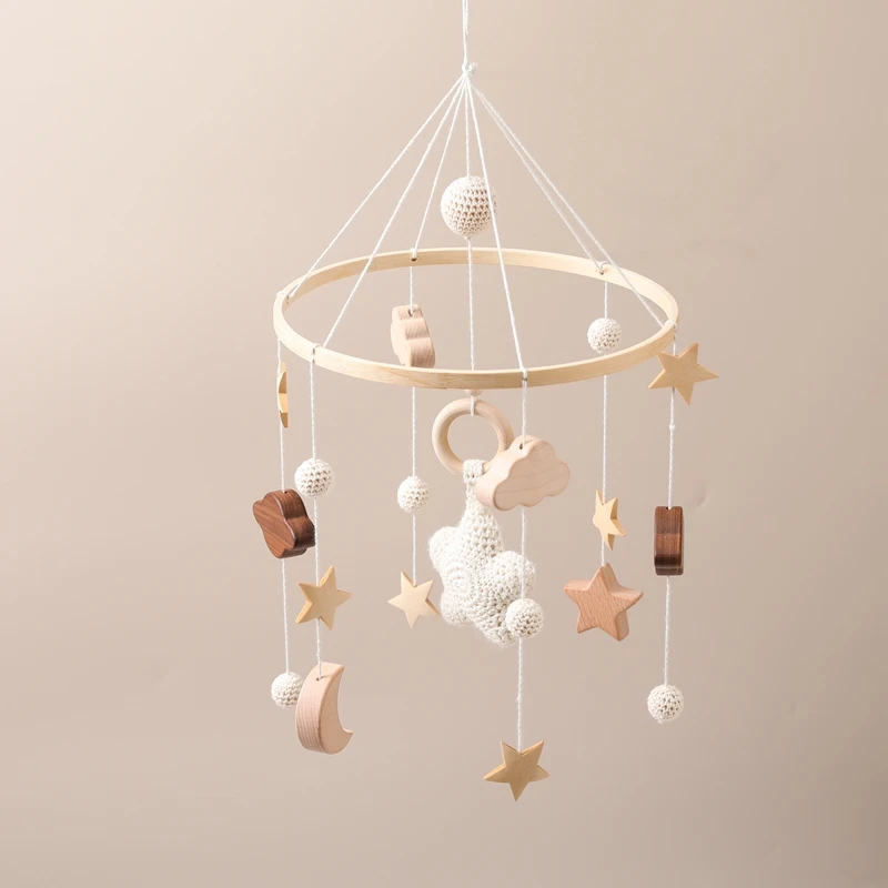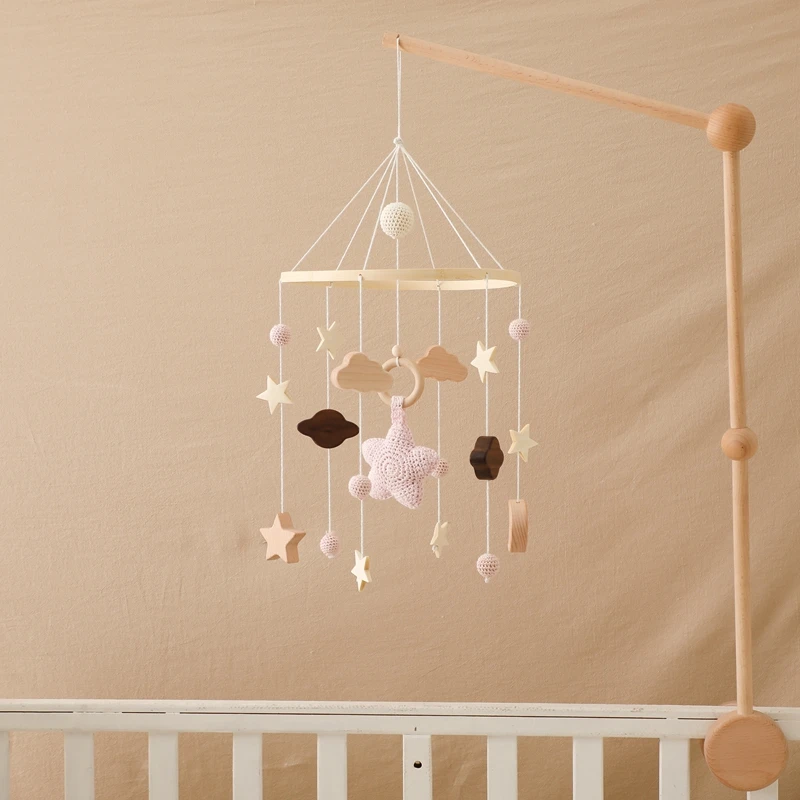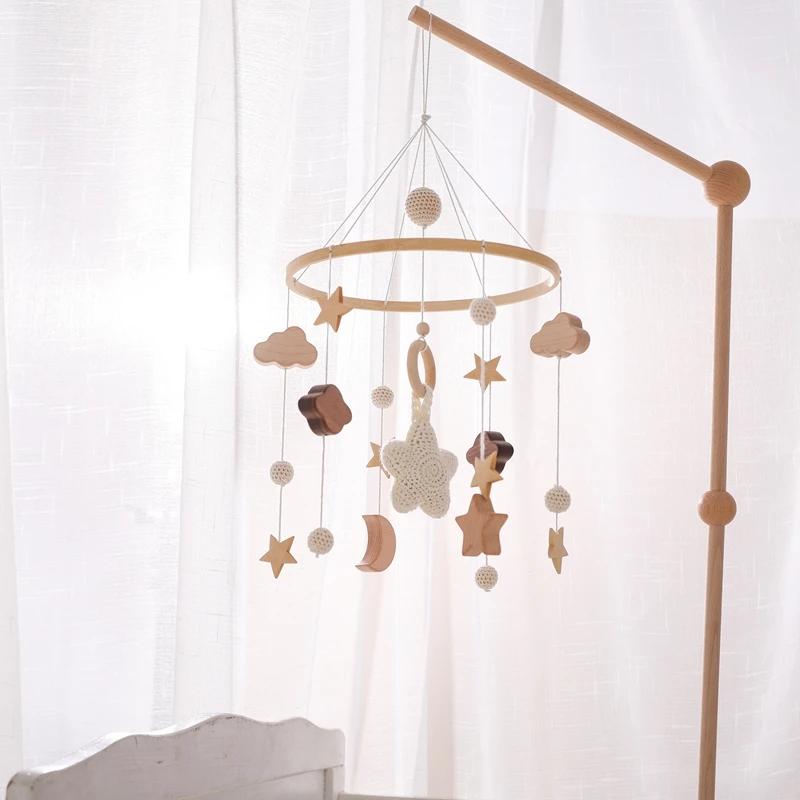 Baby Wooden Crib Mobile Bed Bell Hanging Rattle Toy Newborn Music Box Bed Bell Hanging Toys Holder Bracket Infant Crib Baby Gift