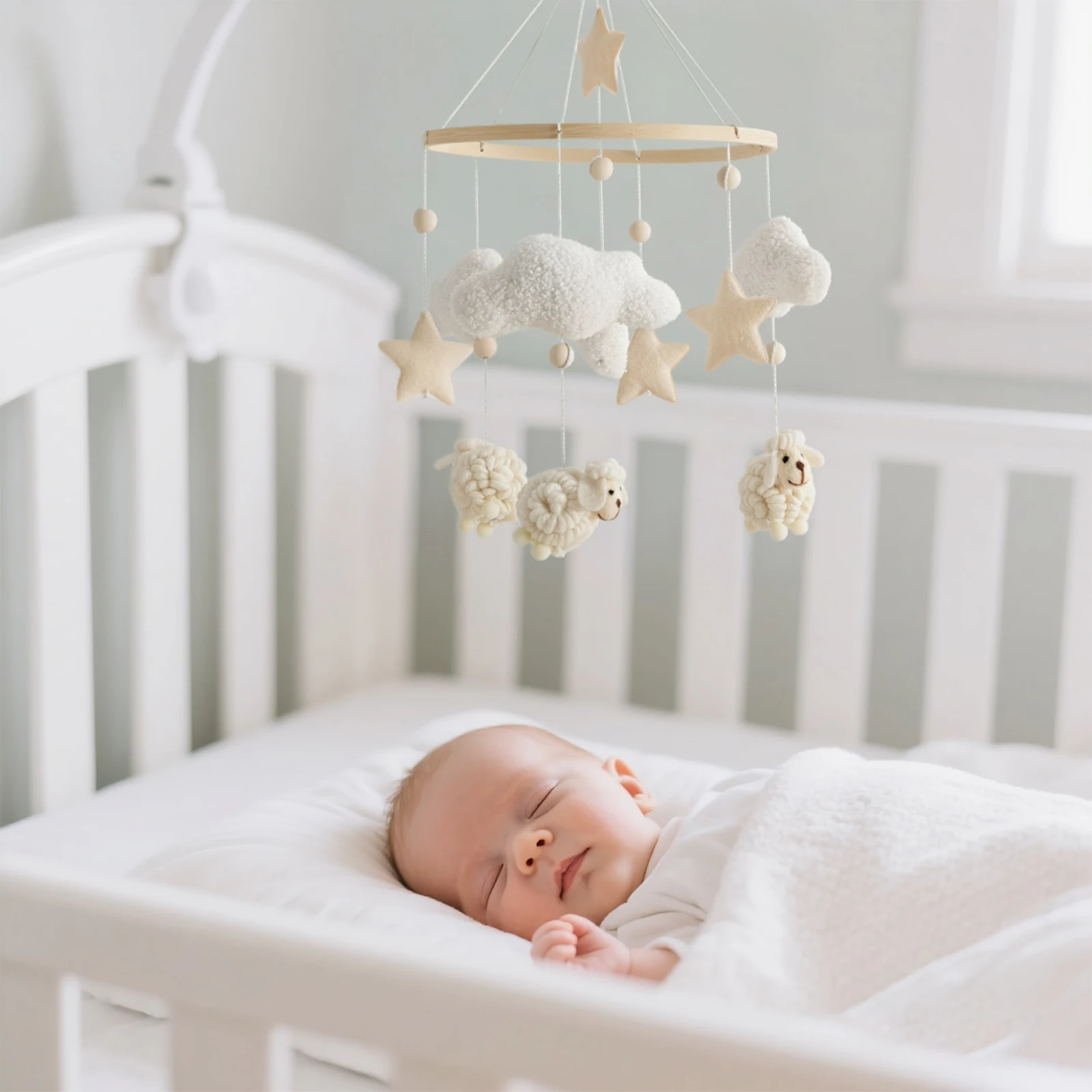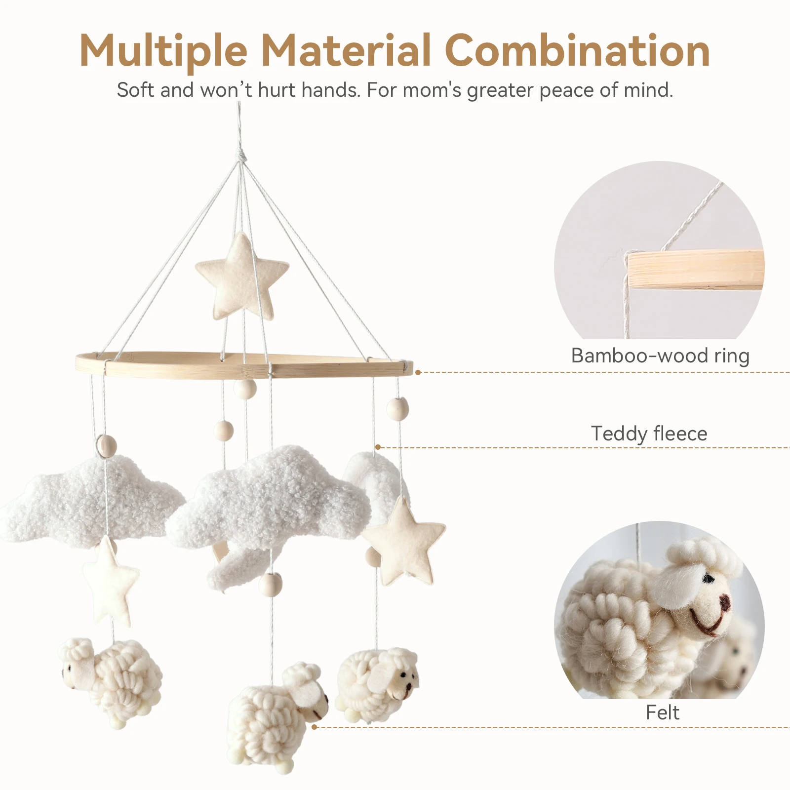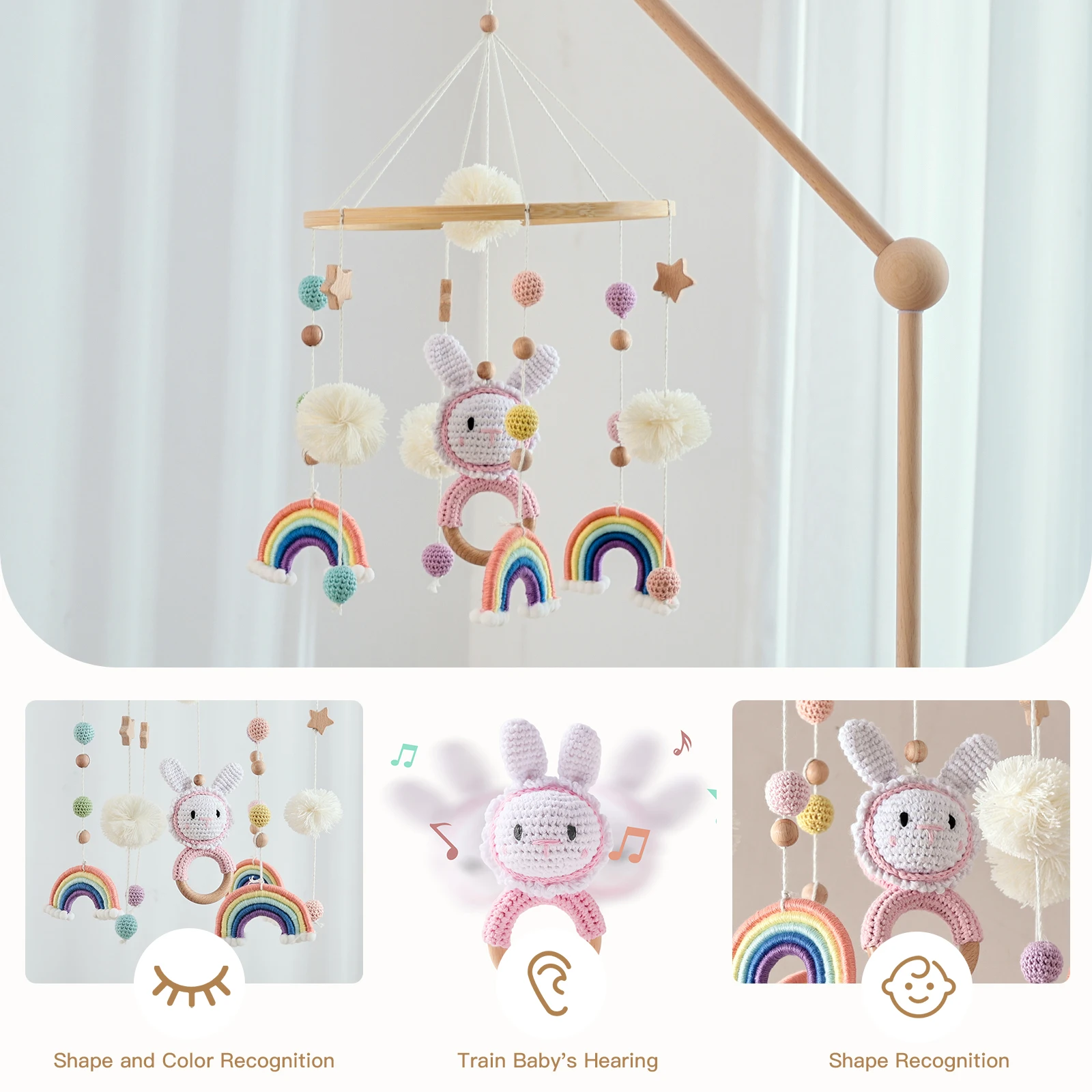 Campana de madera móvil para cuna de bebé, móvil para cuna de animales con música para niñas y niños, móvil para decoración de habitación de Moisés