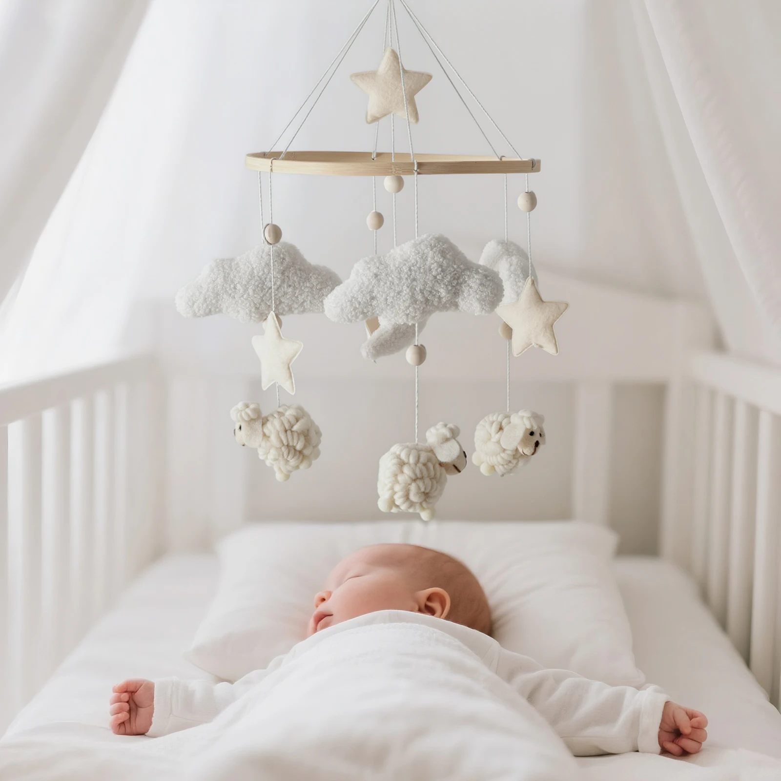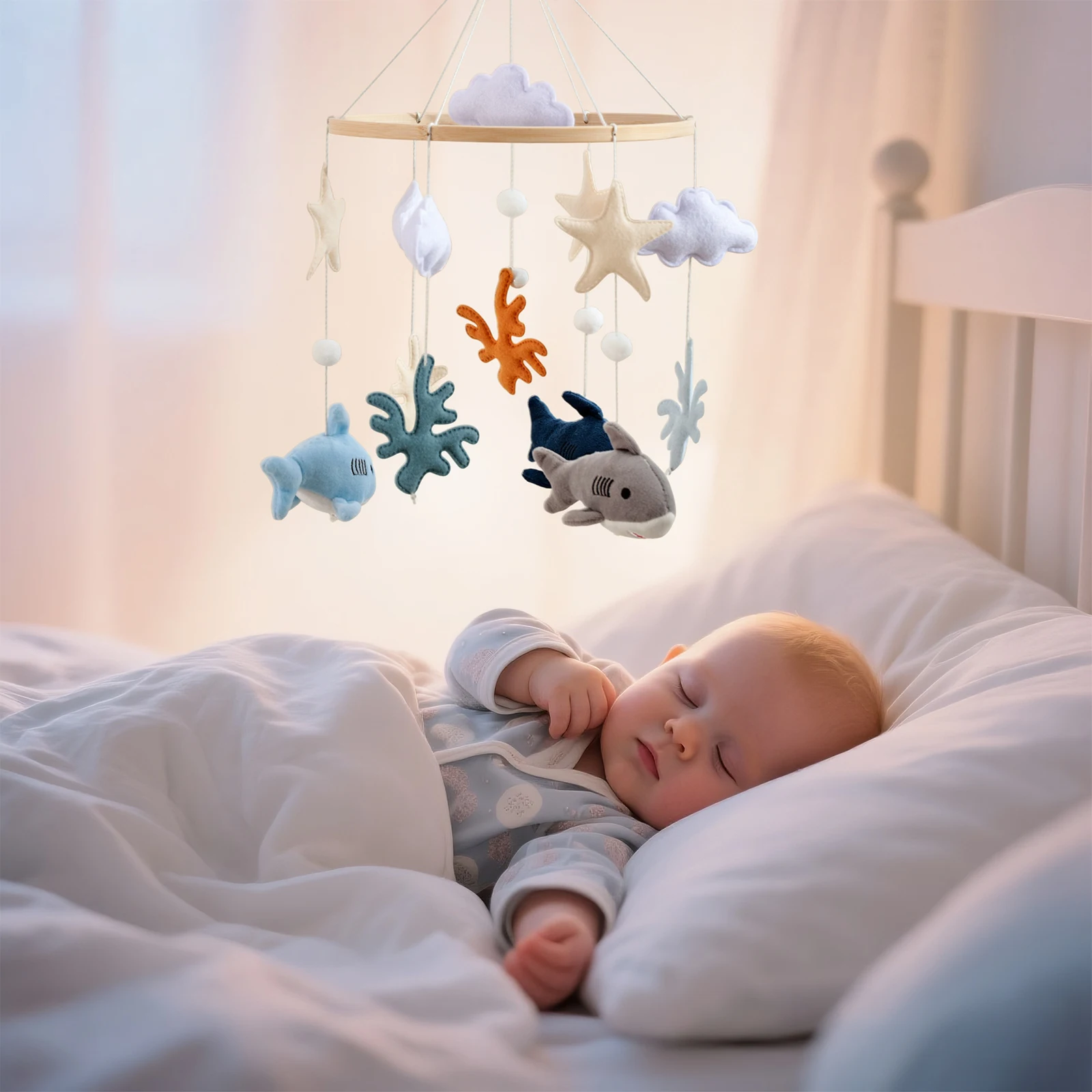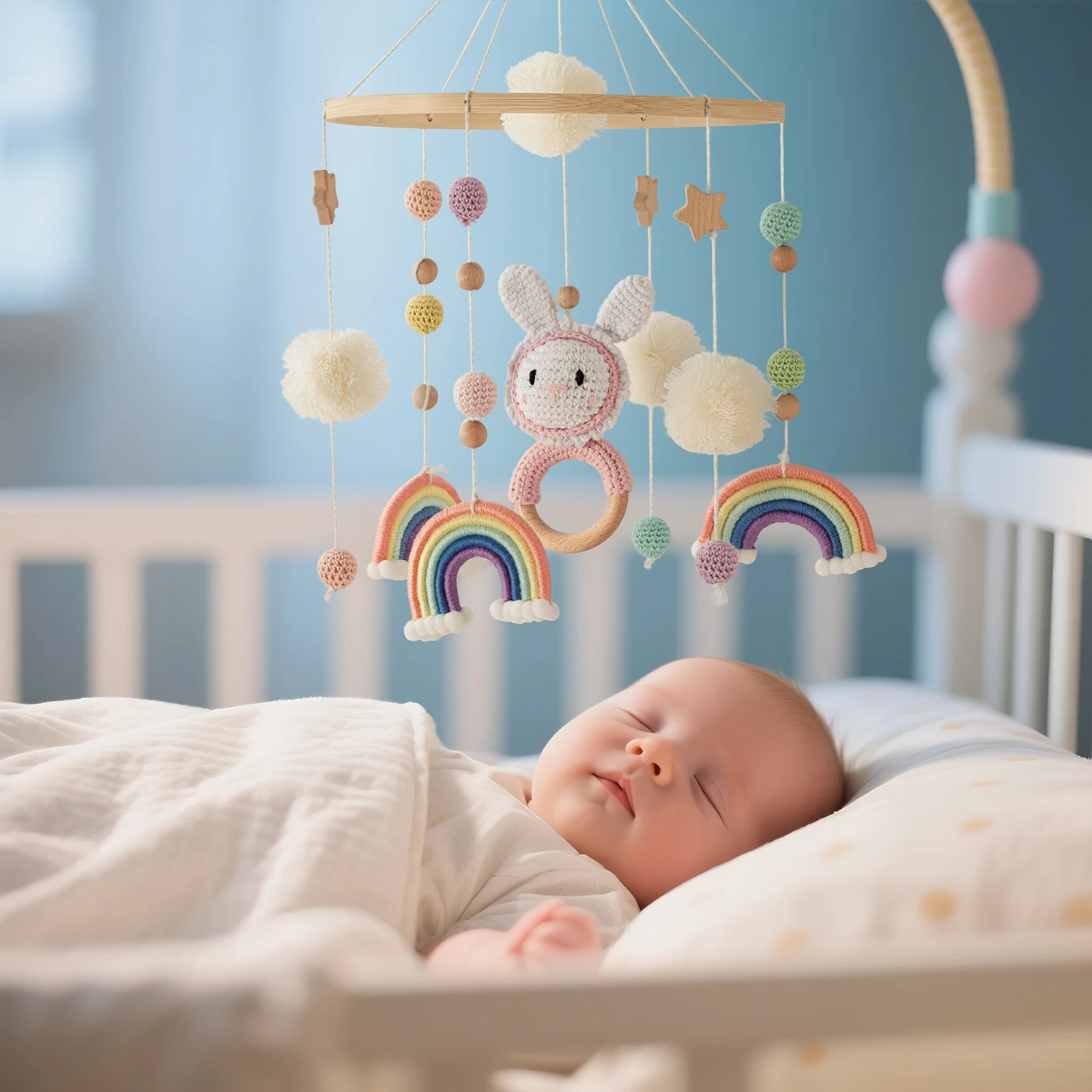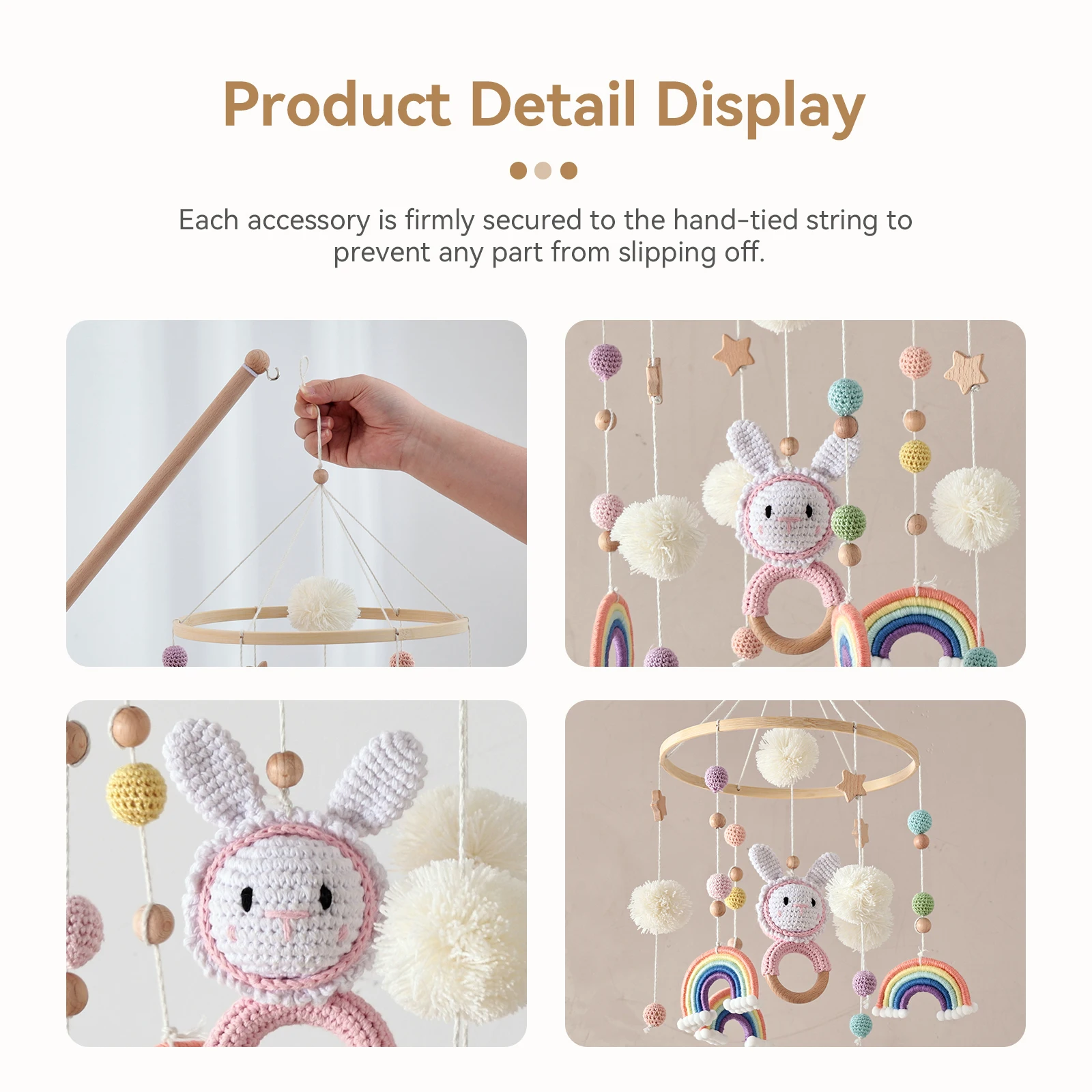 Campana de madera móvil para cuna de bebé, móvil para cuna de animales con música para niñas y niños, móvil para decoración de habitación de Moisés