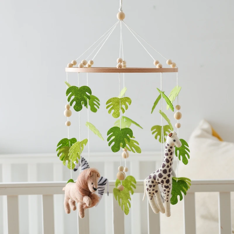 Sonajero para bebé, cuna de madera, cama móvil, campana, juguetes de fieltro suave, muñeco Animal de bosque, juguete para chico, cochecito, cuna cómoda, soporte colgante, juguete para regalo
