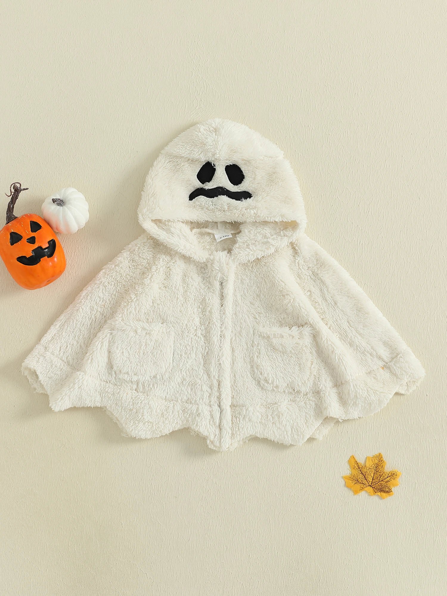 Capa para bebés y niñas, disfraz de calabaza/fantasma de Halloween, capa de felpa suave y peluda con capucha