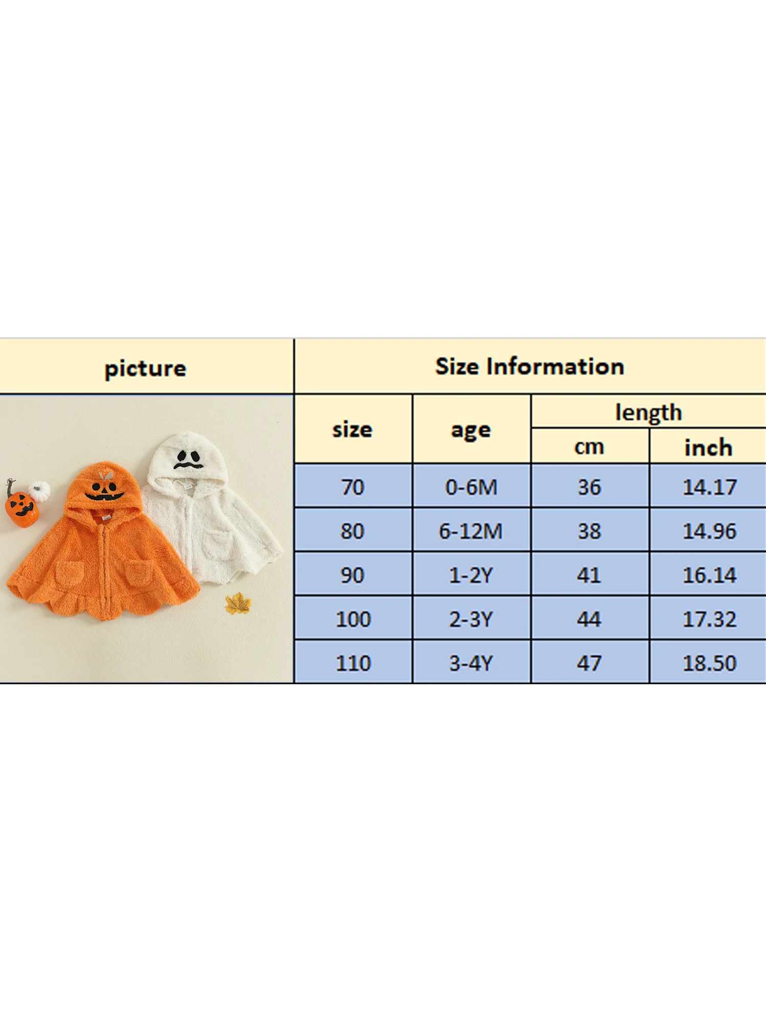 Capa para bebés y niñas, disfraz de calabaza/fantasma de Halloween, capa de felpa con capucha peluda suave - imagen 1