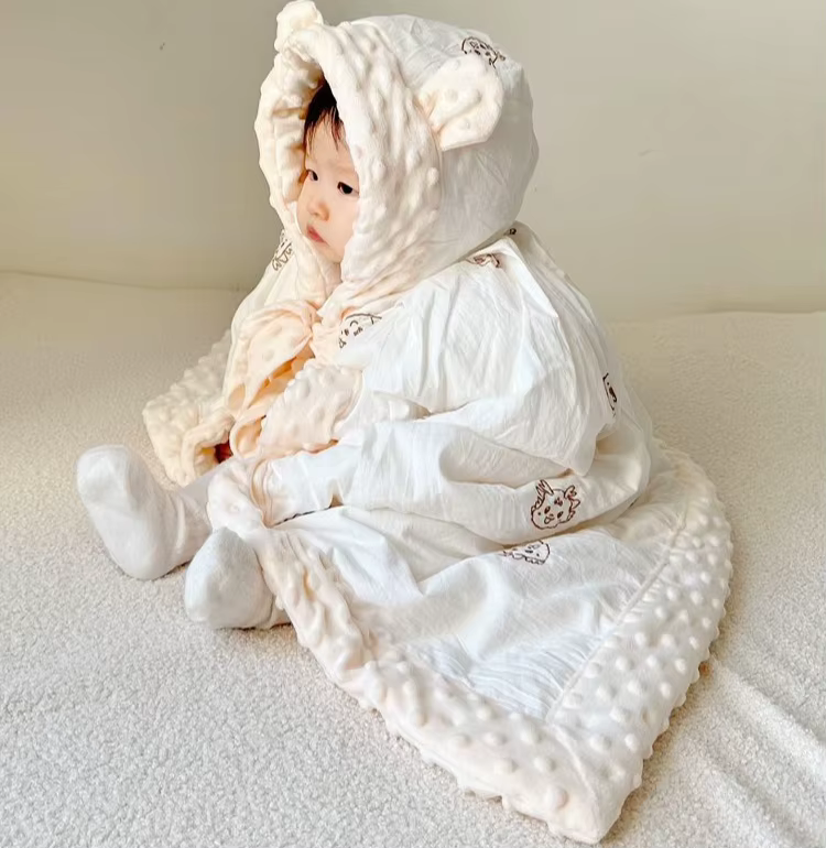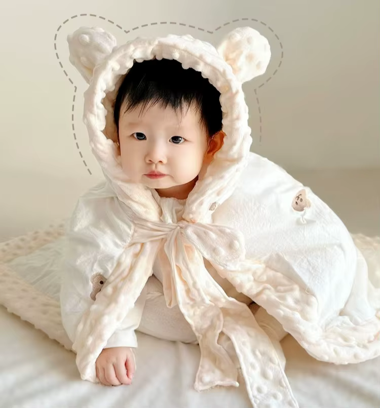 Comprar Capa con capucha para bebé, Poncho para envolver, manta 100% de algodón con bordado de dibujos animados, cubierta cálida a prueba de viento para recién nacidos y niños pequeños