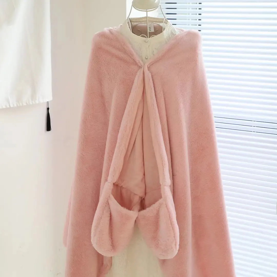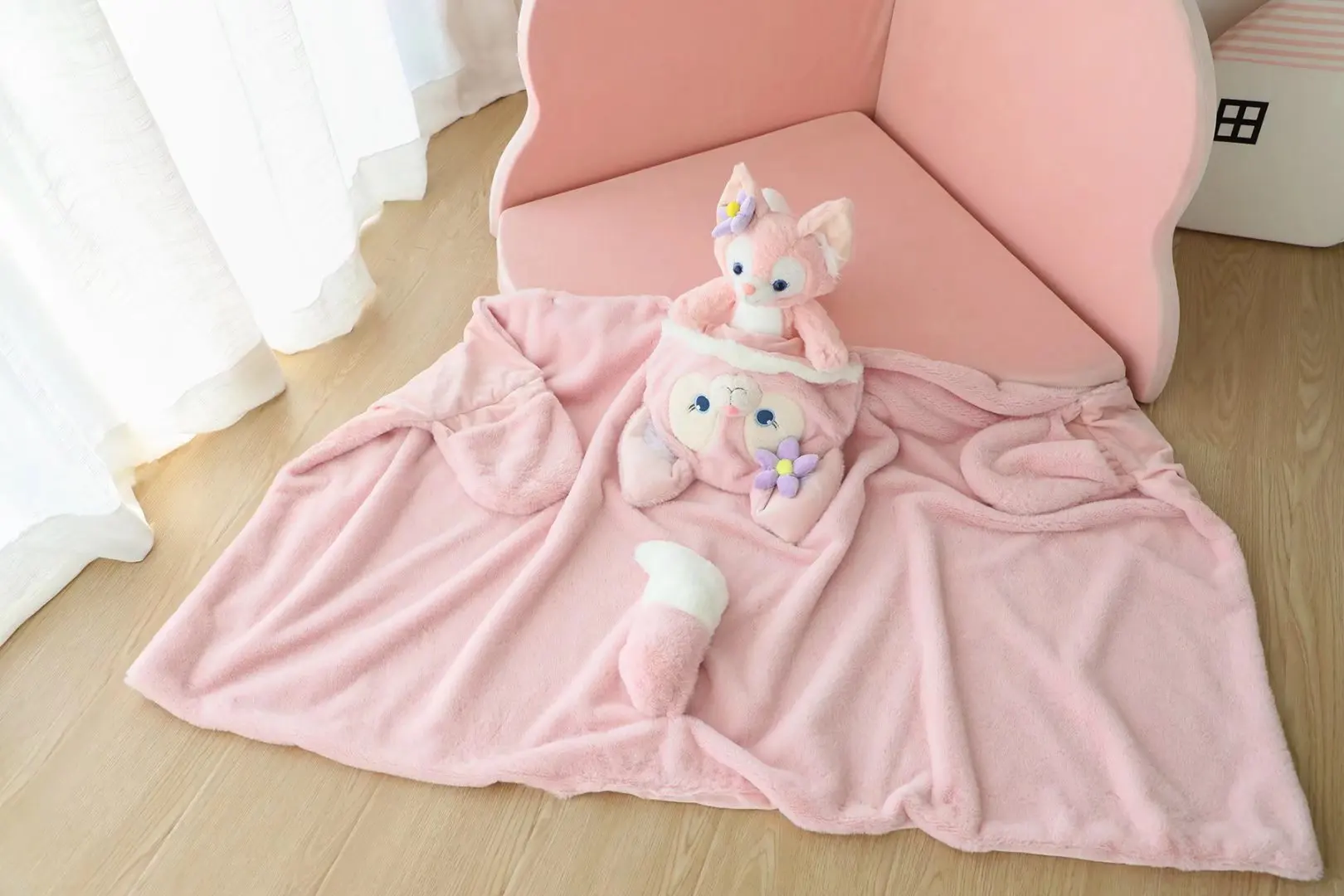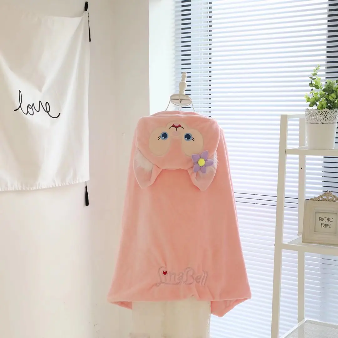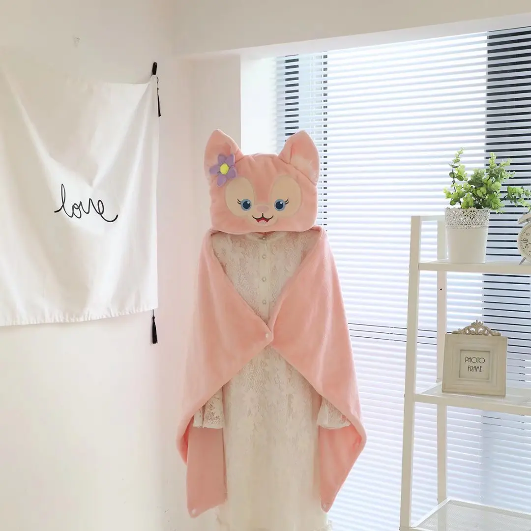 Kawaii Disney Linabell capa de felpa dibujos animados zorro Rosa capa con capucha aire acondicionado manta sofá decoración cálida ropa niñas regalo