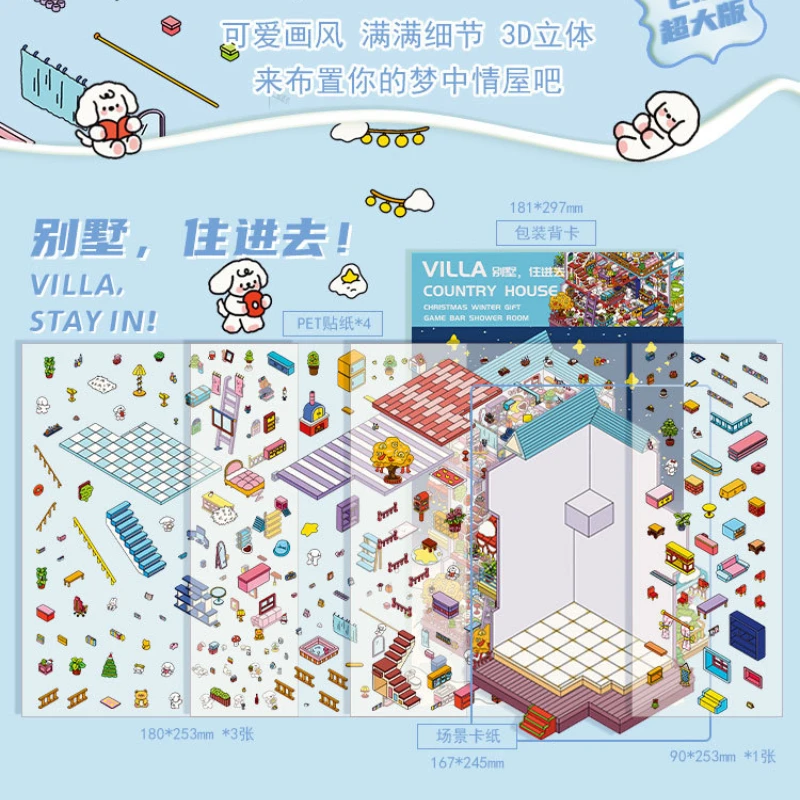 Comprar Caper de dibujos animados de talla grande y Villa 2.5D DIY pegatina de paisaje bolsillo cabina escena juego pegatinas regalo de Navidad para