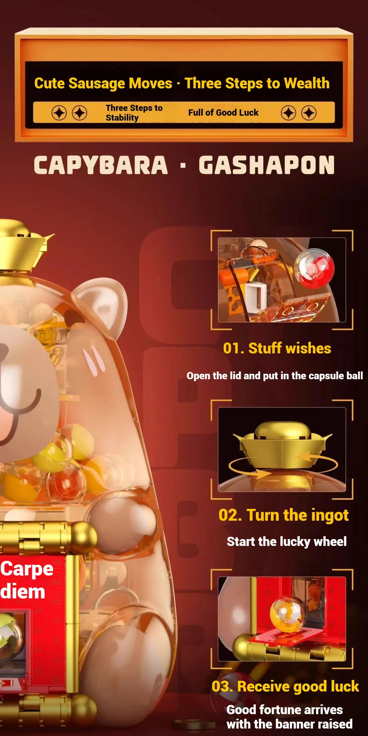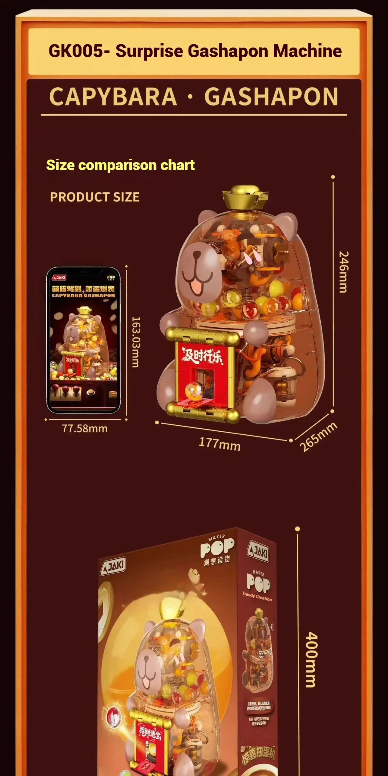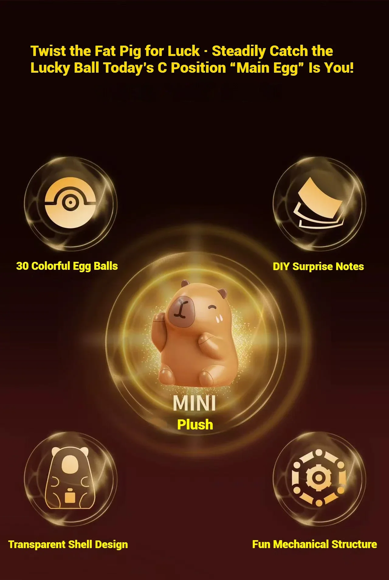 ✨Adorable diseño temático de capibara: el modelo se centra en el popular capibara "contada hacia atrás", presentando su icónico cuerpo redondo, expresión suave y detalles divertidos como un pequeño sombrero o detalles en forma de pata.Los coloridos paneles y los patrones de dibujos animados de la máquina gashapon realzan su encanto, haciéndola atractiva instantáneamente para niños y niñas que aman los lindos juguetes con temática de animales.