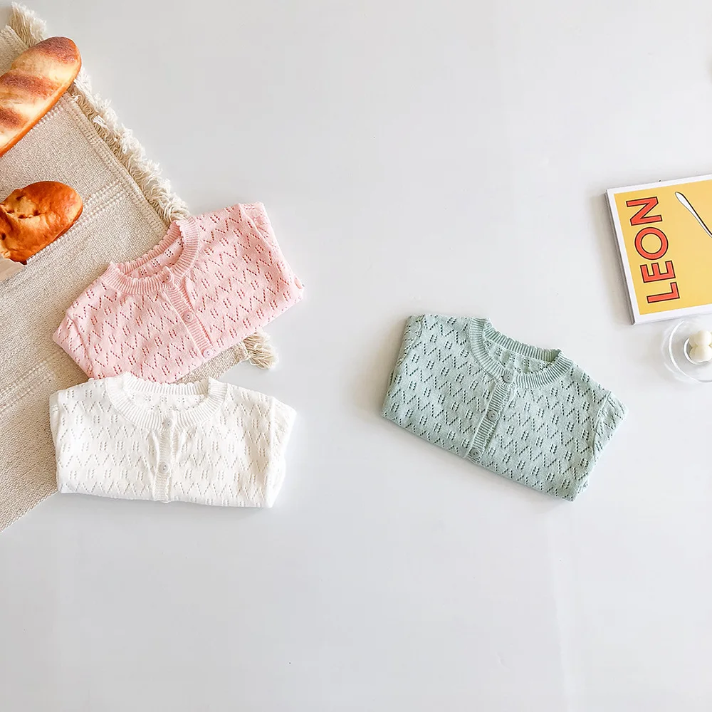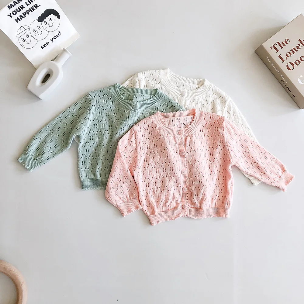 Cárdigan fino de princesa para bebé y niña, camisa de manga larga de aire acondicionado, abrigo de punto, suéter KF676, 0 a 2 años