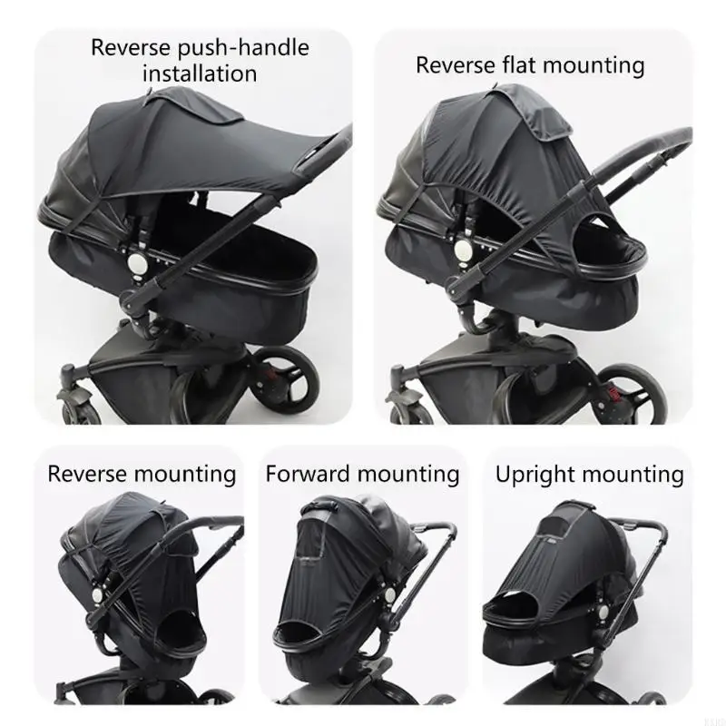 Nuestra funda para dosel para cochecito no solo mejora la experiencia al aire libre de su bebé al bloquear el sol sino que también agrega un toque a la configuración de su cochecito, lo que la convierte en un accesorio imprescindible para las familias en movimiento.