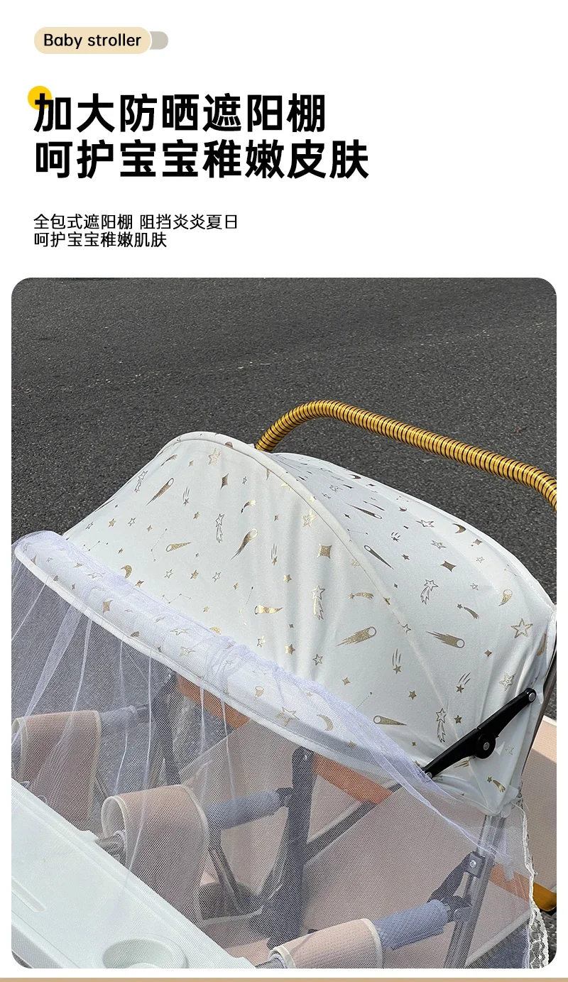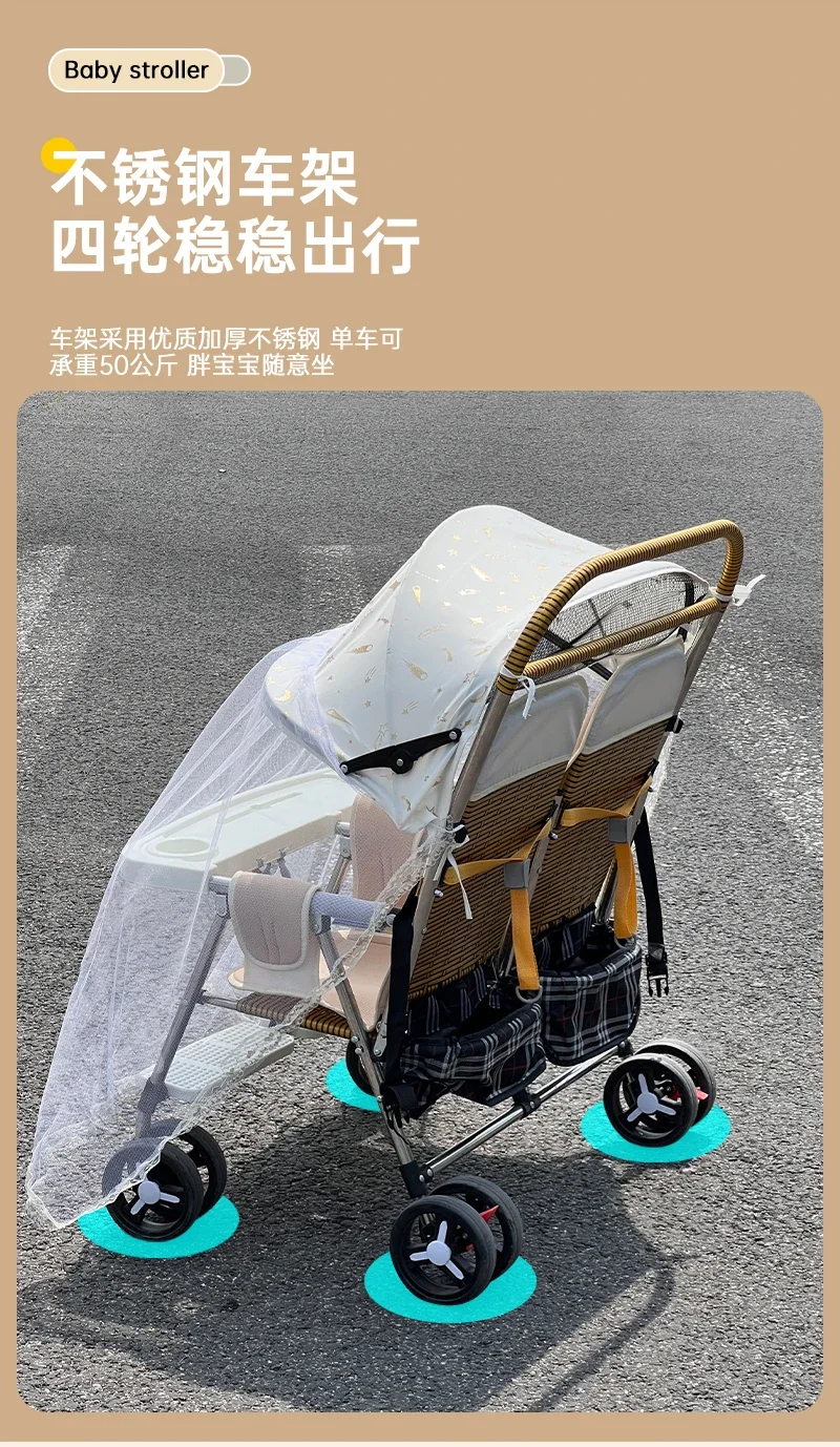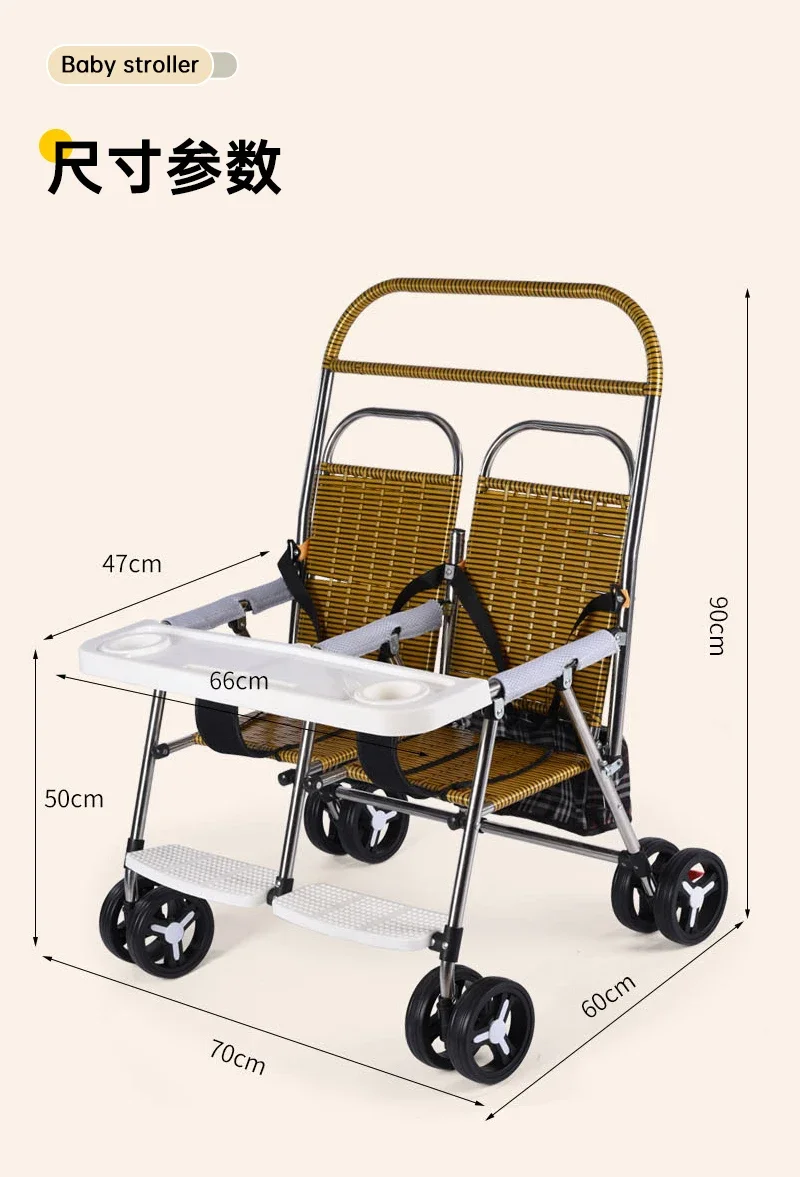 Carrito de bebé plegable para gemelos, herramienta de deslizamiento compacta, ligero, reclinable, portátil