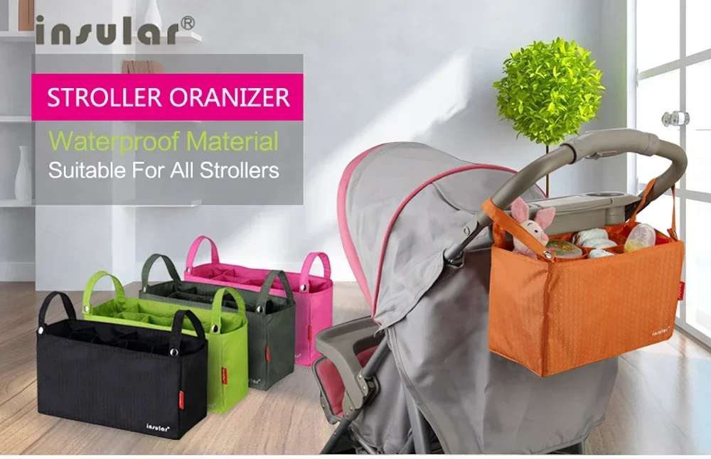 Carrito impermeable colgante portátil de poliéster 600D, bolsa de pañales de viaje para mamá y bebé, cochecito térmico, bolsa de pañales colgante, forro interior